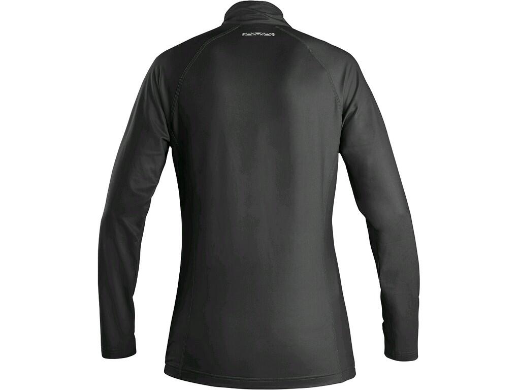 Damska bluza / koszulka nadaje się jako pierwsza i druga warstwa. Zapięcie na zamek na szyi, raglanowe rękawy, płaskie szwy, boczne szwy, elementy odblaskowe. Wykonana z elastycznego i szybko schnącego materiału.