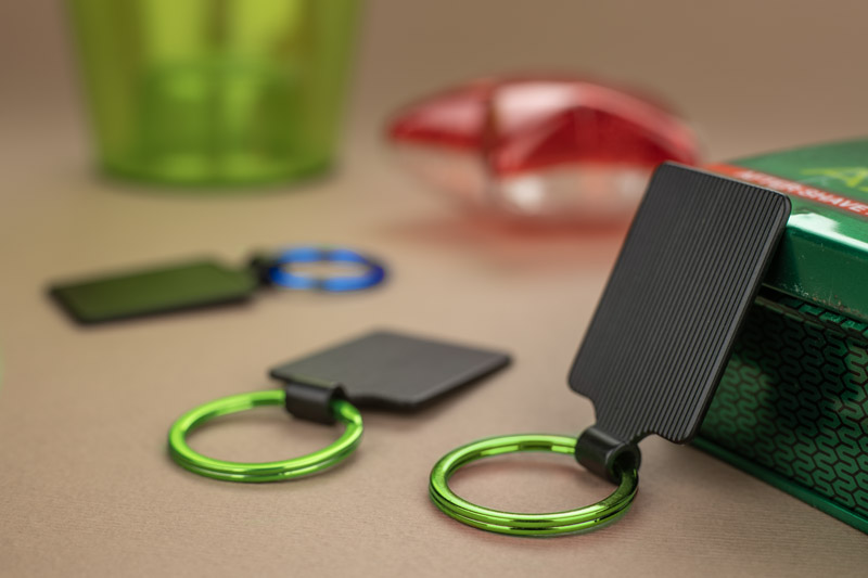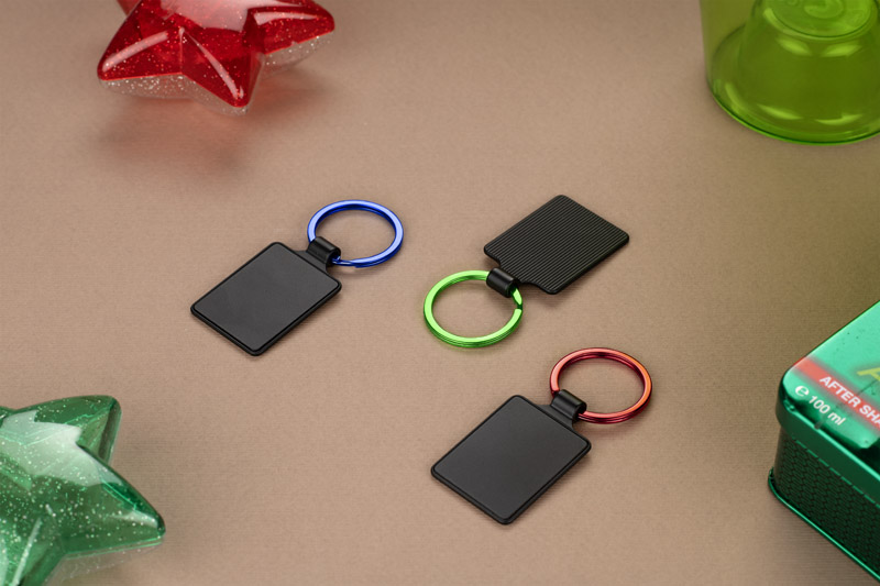 Brelok COLORS to prosty, ale efektowny gadżet reklamowy, który łączy funkcjonalność z ciekawym designem. Składa się z metalowego kółka w kolorze oraz kwadratowej zawieszki, która stanowi miejsce na znakowanie. Dostępny w kilku wariantach kolorystycznych, pozwala dopasować gadżet do identyfikacji wizualnej marki. Szczególną zaletą jest efekt znakowania – grawer sprawia, że logo przybiera kolor kółka, tworząc spójny i estetyczny detal.