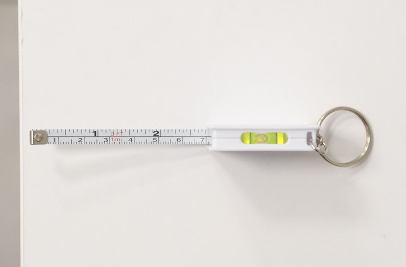 Breloczek do kluczy z miarką o długości 1 m i poziomicą.