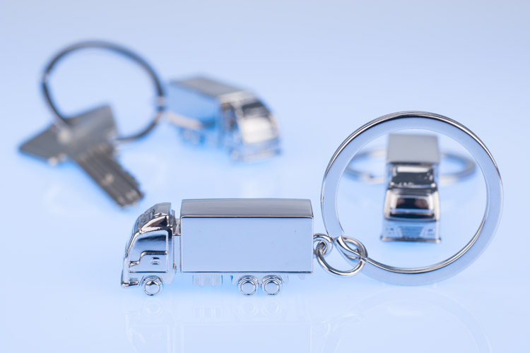 Brelok – miniaturka TIRa, o unikalnym trójwymiarowym kształcie wyjątkowo wiernie odzwierciedla detale prawdziwych ciężarówek. Brelok wykonany z chromowanego metalu, pakowany w elegancki czarny kartonik. Logo wygrawerujemy na plandece naczepy.