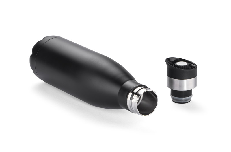 Butelka termiczna BURN wykonana ze stali nierdzewnej o podwyższonym standardzie dzięki próżni między ściankami utrzymuje temperaturę do ok. 12 godzin. Przykrywka z ustnikiem posiada wygodny przycisk, dzięki któremu aby się napić nie trzeba jej odkręcać.