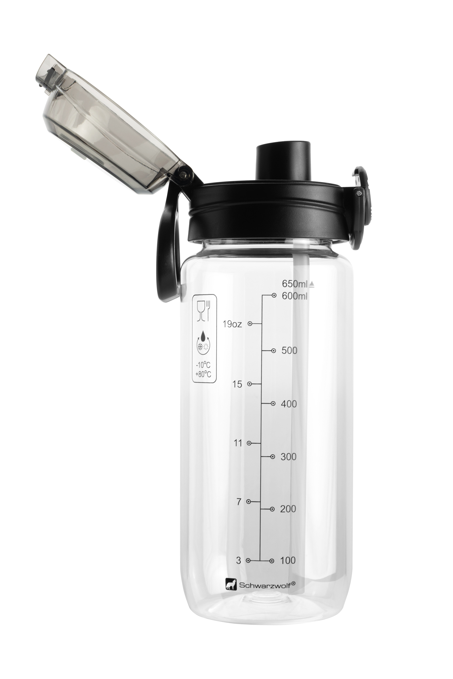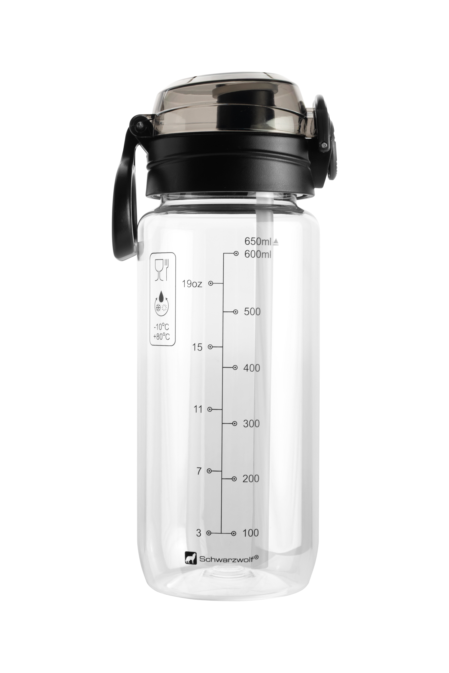 Butelka z tritanu KARISIMBI Schwarzwolf to idealny towarzysz podczas aktywności fizycznej i codziennych wyzwań. Wykonana z wytrzymałego, wolnego od BPA tritanu, gwarantuje bezpieczeństwo i trwałość użytkowania. Przezroczysty korpus o pojemności 650 ml pozwala na łatwą kontrolę ilości płynu, a czarna zakrętka z uchwytem ułatwia przenoszenie i zawieszanie butelki na plecaku czy rowerze.