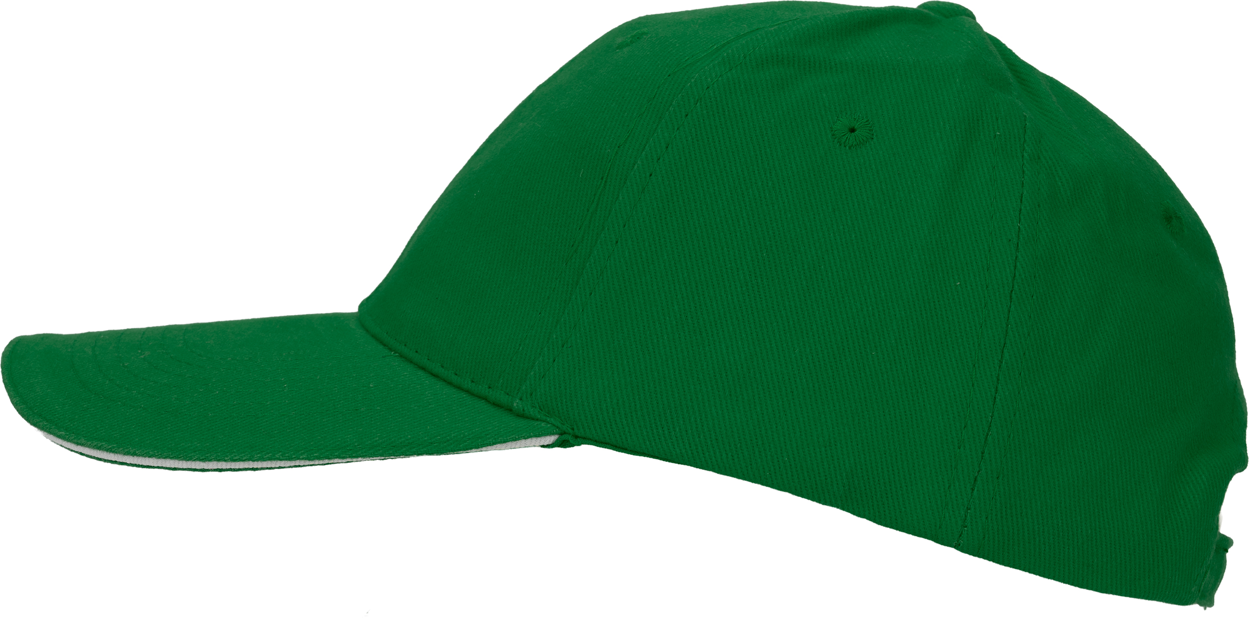 Bawełniana, 6-panelowa czapka z daszkiem typu Sandwich, wykonana z bawełny czesanej wolnej od AZO (gramatura 260 g/m²), regulowana za pomocą metalowego zapięcia.