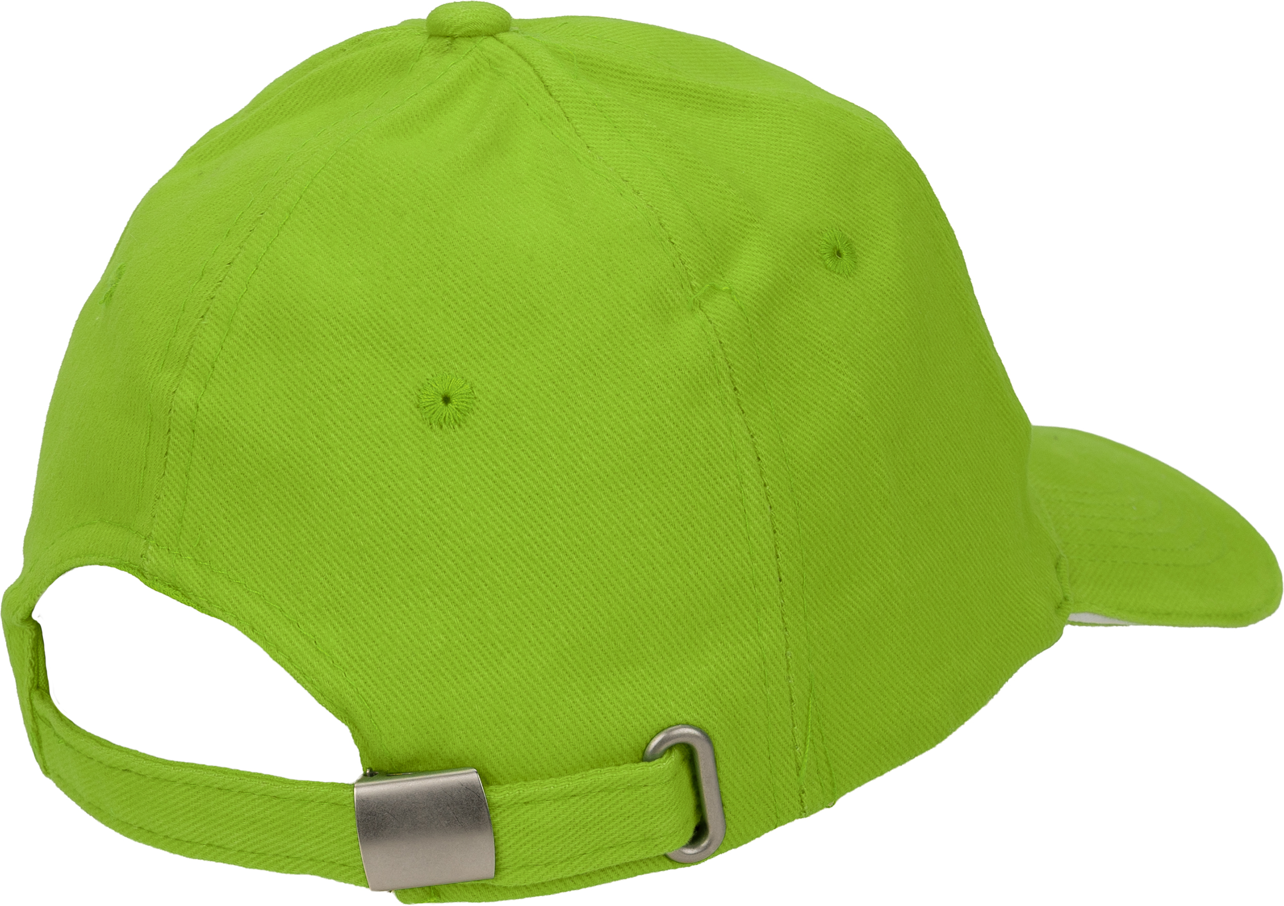 Bawełniana, 6-panelowa czapka z daszkiem typu Sandwich, wykonana z bawełny czesanej wolnej od AZO (gramatura 260 g/m²), regulowana za pomocą metalowego zapięcia.