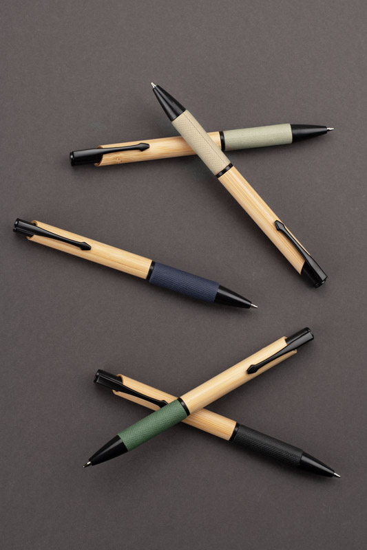 Długopis bambusowy NATU łączy prostą formę z detalami o naturalnym charakterze. Korpus wykonany z bambusa uzupełniono czarnymi elementami mechanizmu oraz uchwytem z tłoczonego papieru, który poprawia komfort trzymania. Długopis wyposażony jest we wkład typu Parker, co zapewnia płynne i wygodne pisanie. Subtelny, a zarazem funkcjonalny gadżet piśmienniczy o charakterze inspirowanym naturą.