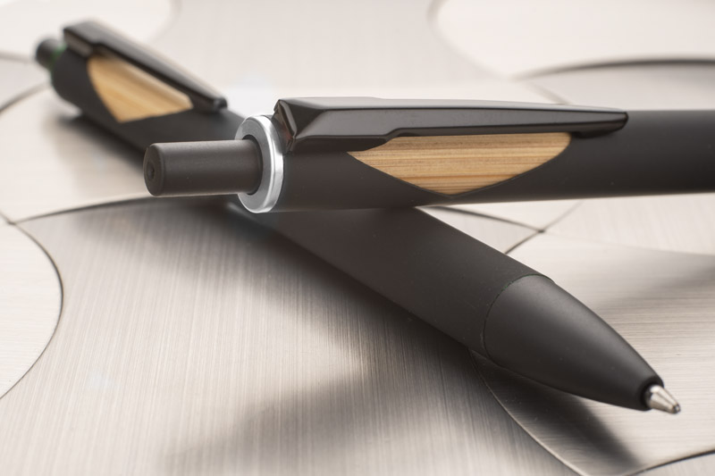 Długopis FRANK posiada przyjemną w dotyku powierzchnię soft touch. Bambusowy element wraz z metalicznym wykończeniem sprawiają, że długopis wygląda elegancko i nowocześnie.