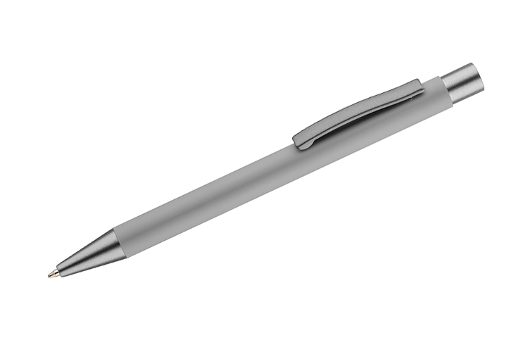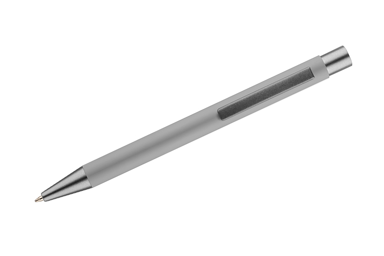 Długopis GOMA to prosty design połączony z przyjemna w dotyku gumowana powierzchnią. Całość jest utrzymana w lekkich, matowych barwach. Wykonany z aluminium. Wykończenia w kolorze grafitowym. Wkład w kolorze niebieskim.