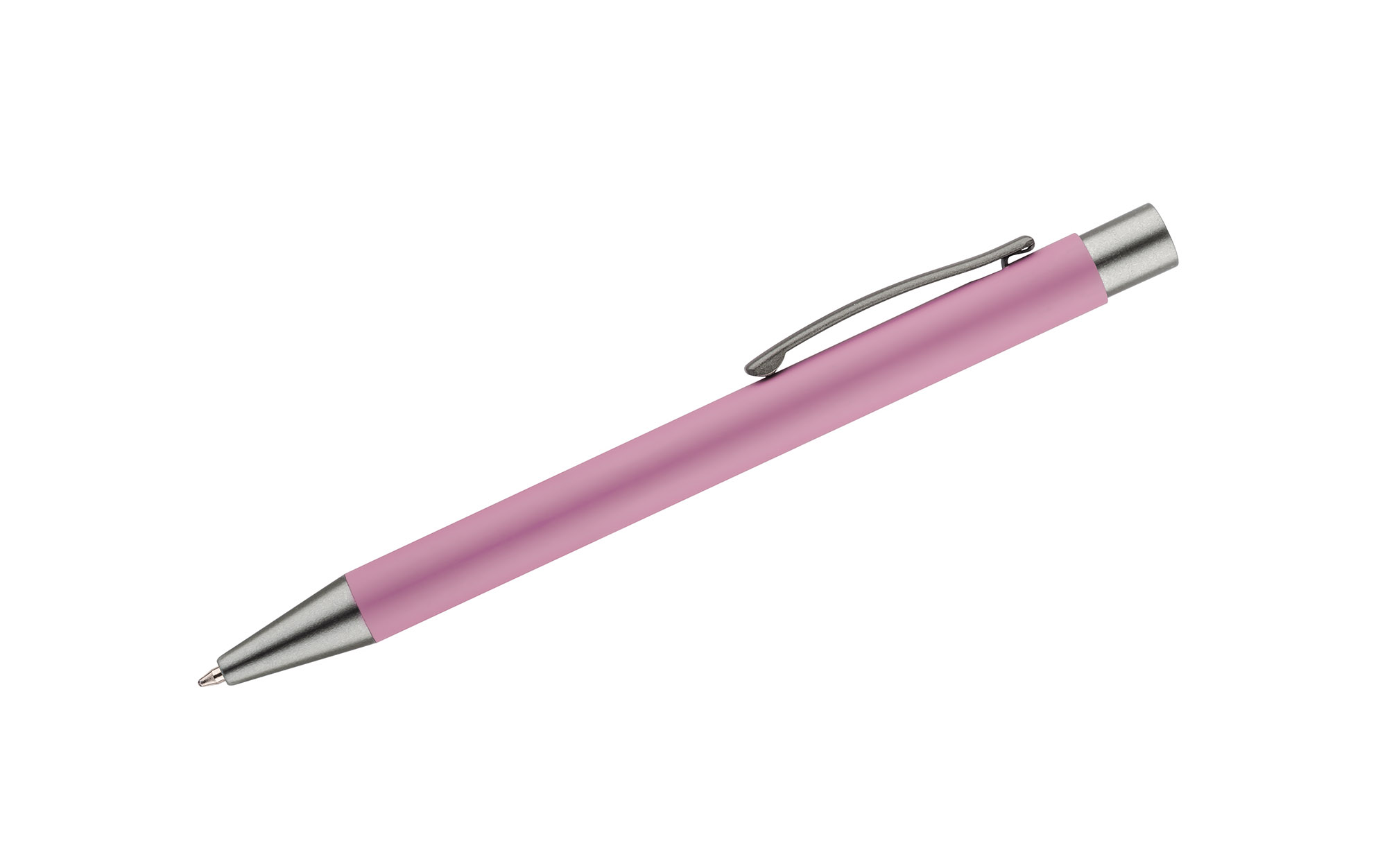 Długopis GOMA to prosty design połączony z przyjemna w dotyku gumowana powierzchnią. Całość jest utrzymana w lekkich, matowych barwach. Wykonany z aluminium. Wykończenia w kolorze grafitowym. Wkład w kolorze niebieskim.