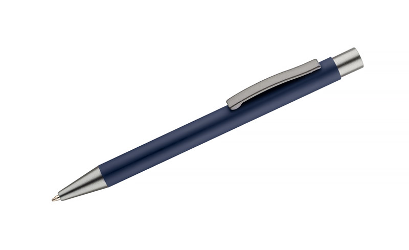 Długopis GOMA to prosty design połączony z przyjemną w dotyku gumowaną powierzchnią. Całość jest utrzymana w lekkich, matowych barwach. Wykonany z aluminium. Wykończenia w kolorze grafitowym. Wkład w kolorze czarnym.