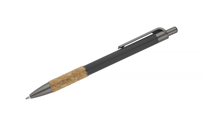 Długopis KUBOD to klasyczny model o prostym, eleganckim kształcie, idealny do znakowania. Aluminiowy korpus pokryty został matową powłoką soft touch, która zwiększa komfort użytkowania. Naturalny korek w części chwytnej przyciąga uwagę i wyróżnia produkt na tle standardowych modeli. Metaliczne akcenty z tworzywa dodają całości nowoczesnego charakteru. Długopis posiada mechanizm automatyczny i jest wyposażony w niebieski wkład typu X20 (wymienny, niedostępny w naszej ofercie).