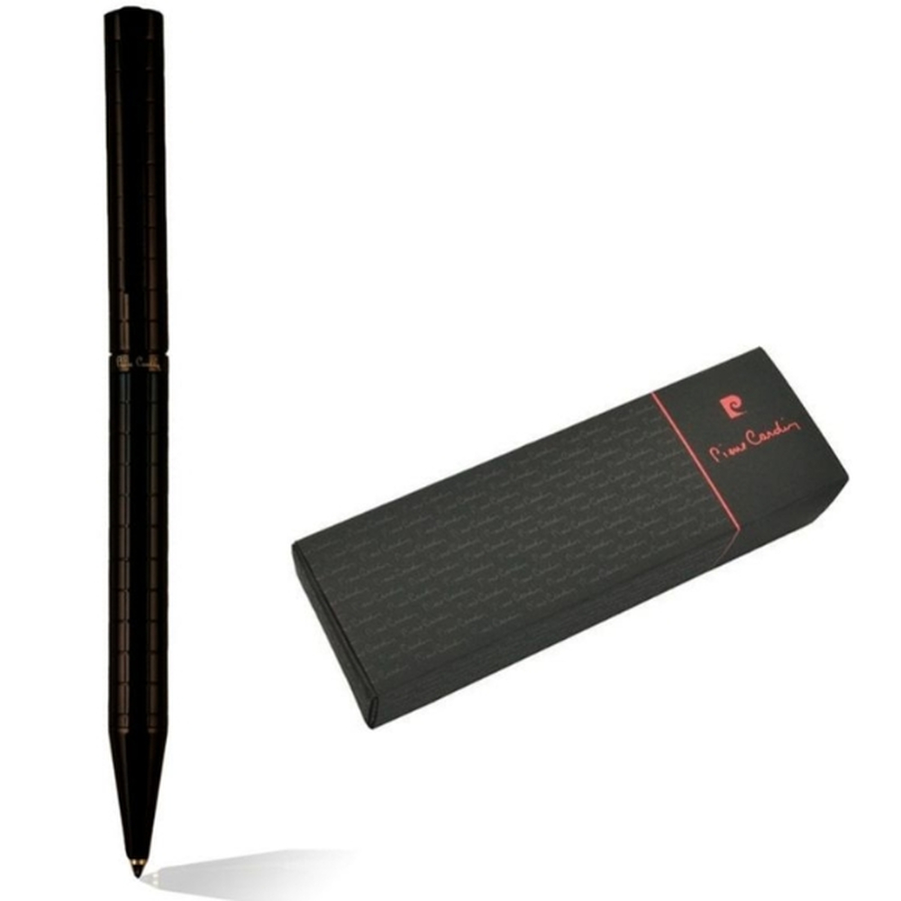 Nowoczesny długopis metalowy z oryginalnym, grawerowanym korpusem i mechanizmem obrotowym. Wyposażony w wysokiej jakości niebieski wkład z końcówką 1 mm. W zestawie z wkładem zapasowym piszącym na czarno. Zapakowany w eleganckie pudełko prezentowe z certyfikatem autentyczności Pierre Cardin.