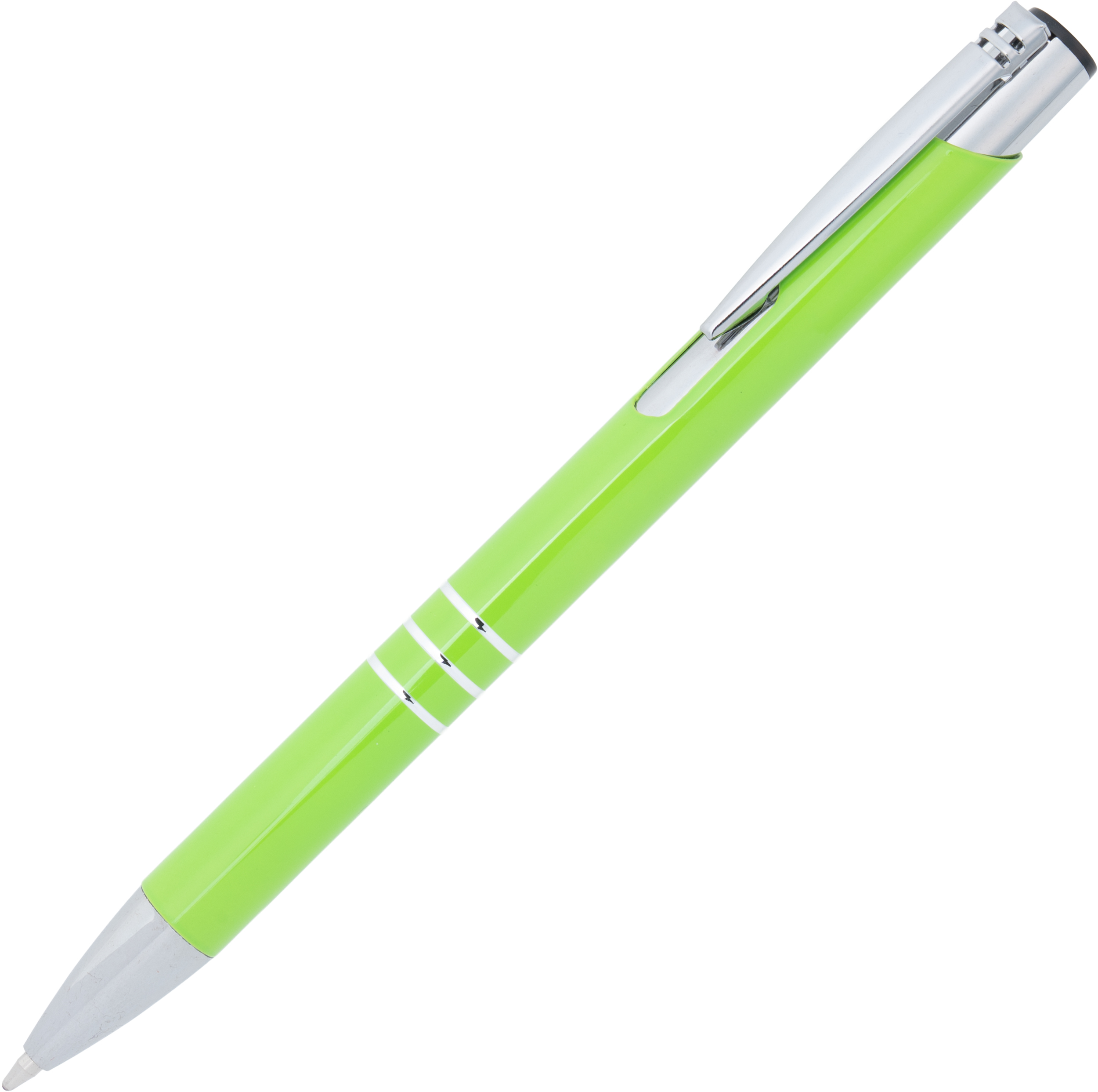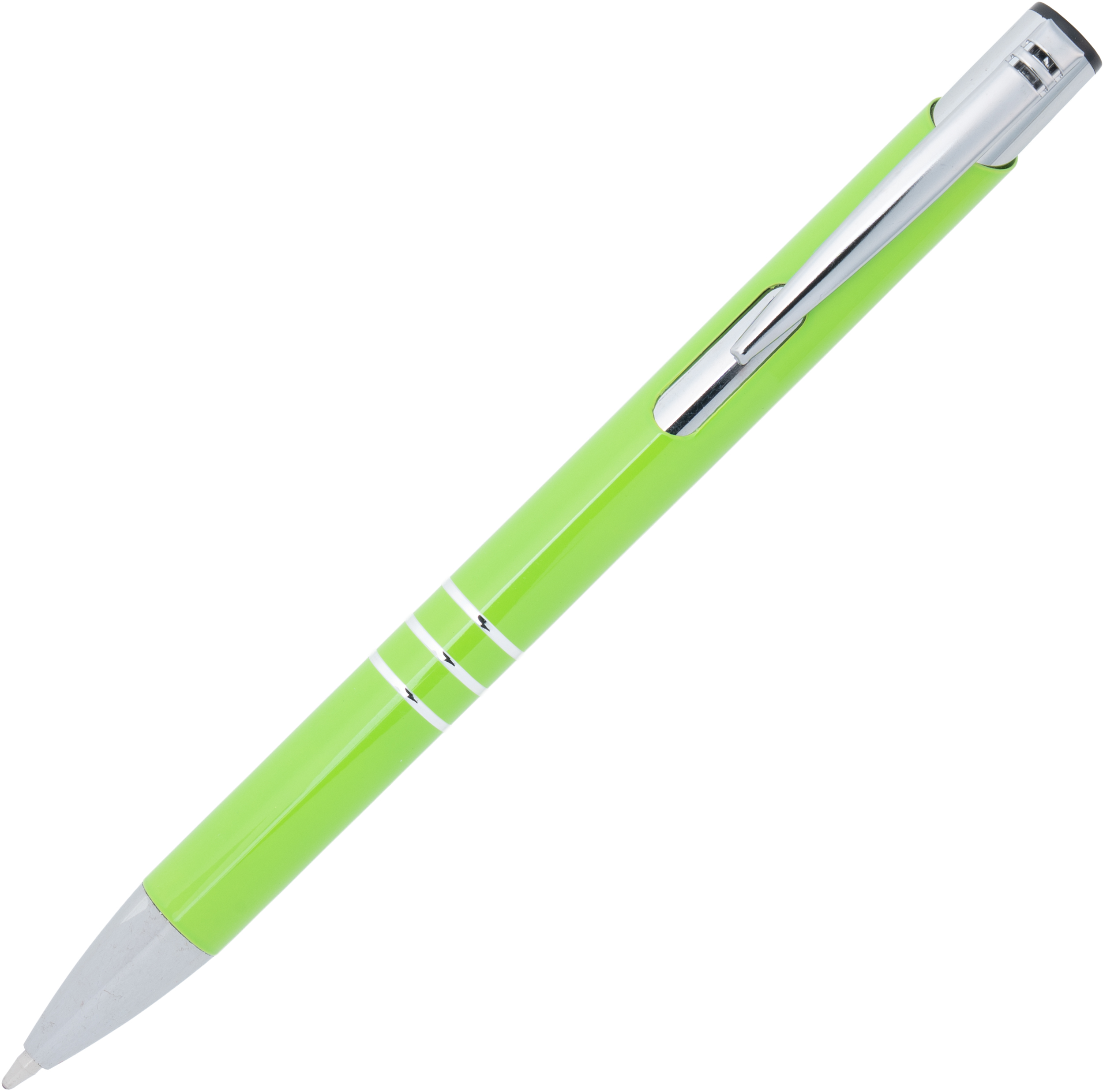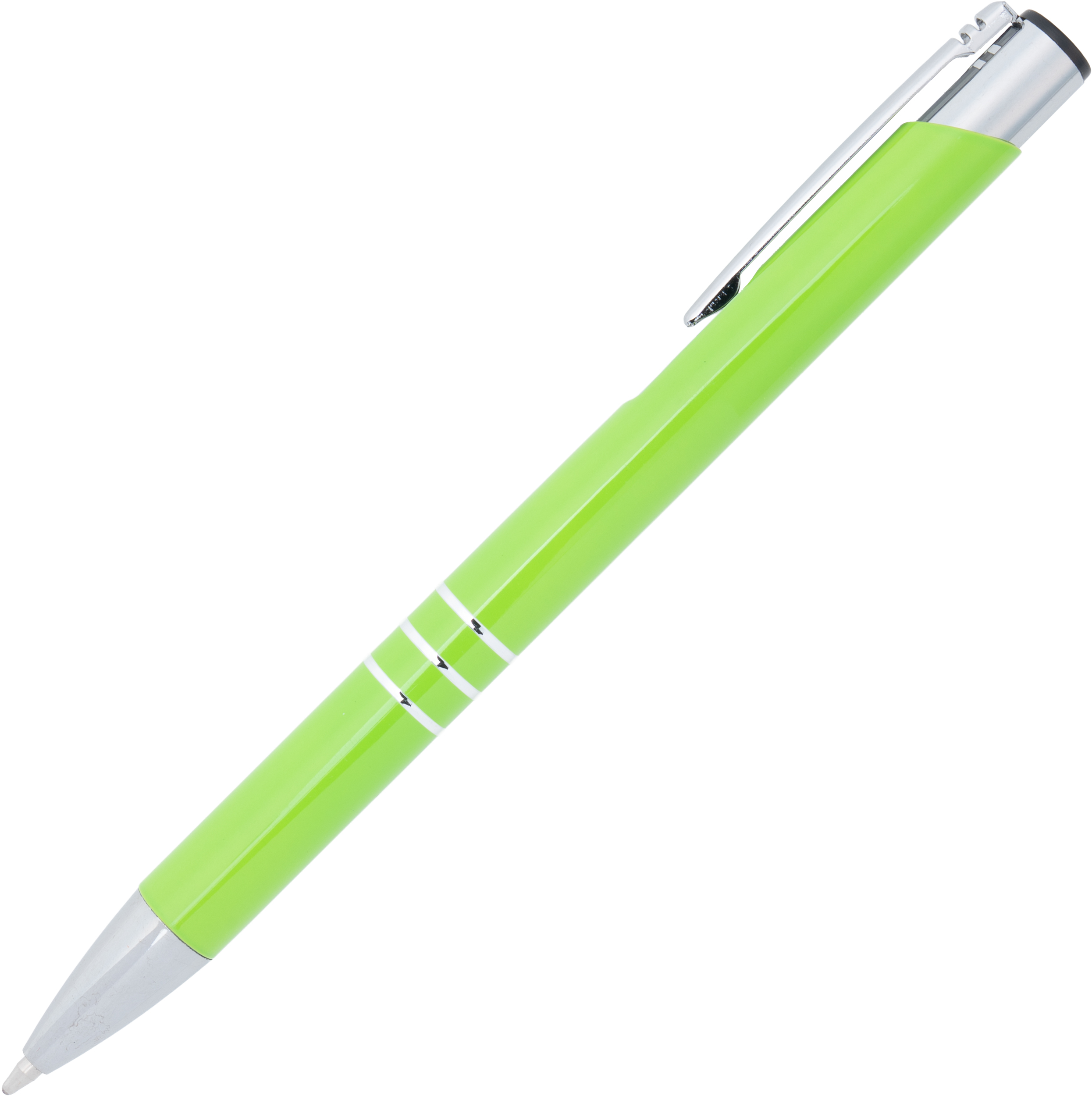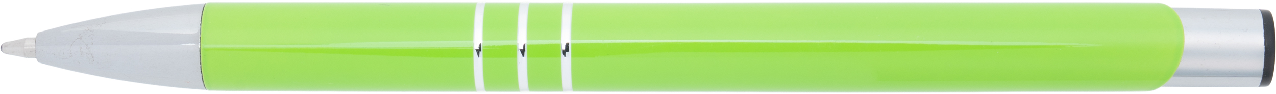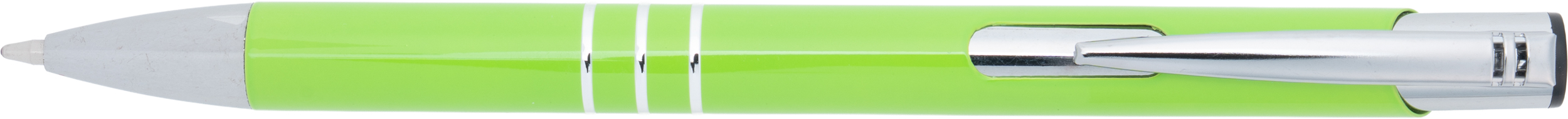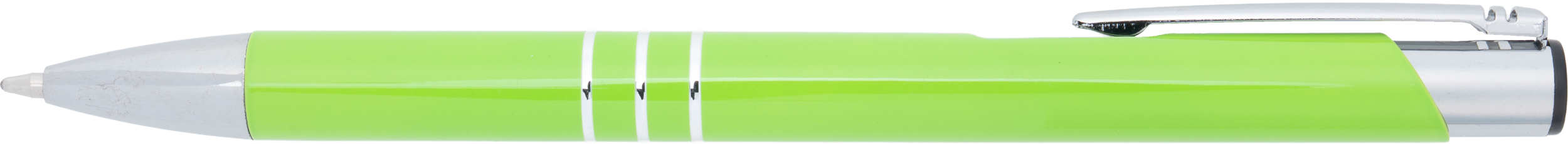 Klasyczny metalowy długopis, popularny wybór jako gadżet reklamowy na rozdanie lub gadżet z logo promujący markę. Wykonany z aluminium, charakteryzuje się srebrnym wykończeniem smukłego klipsu oraz trzema ringami, które elegancko dekorują jego korpus. Długopis sprawdzi się zarówno w biurze, jak i podczas spotkań biznesowych.