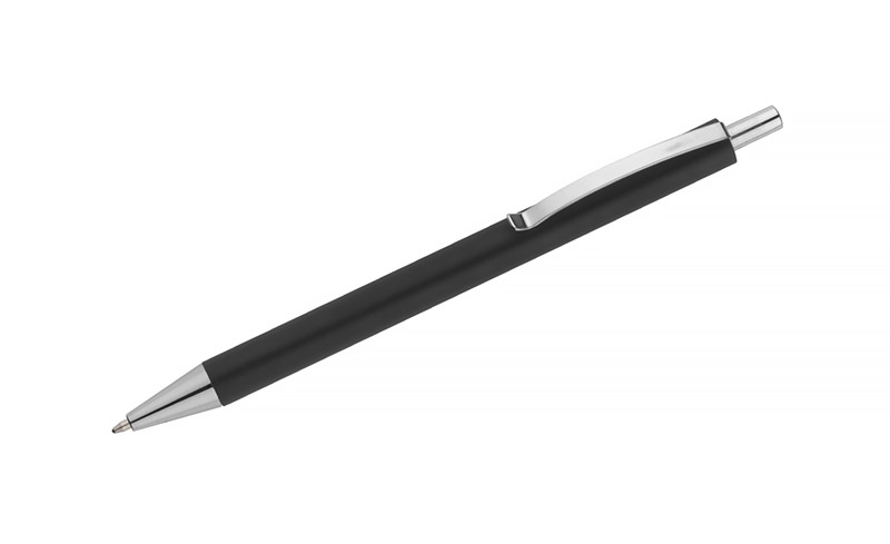 Długopis NOVI wykończony przyjemna w dotyku gumowana powierzchnią z chromowanymi elemantami w kolorze srebrnym. Wkład w kolorze niebieskim.