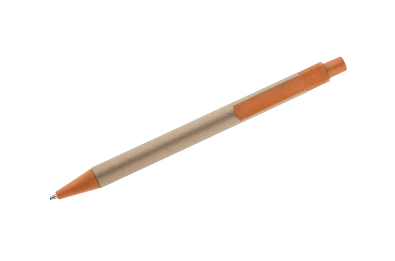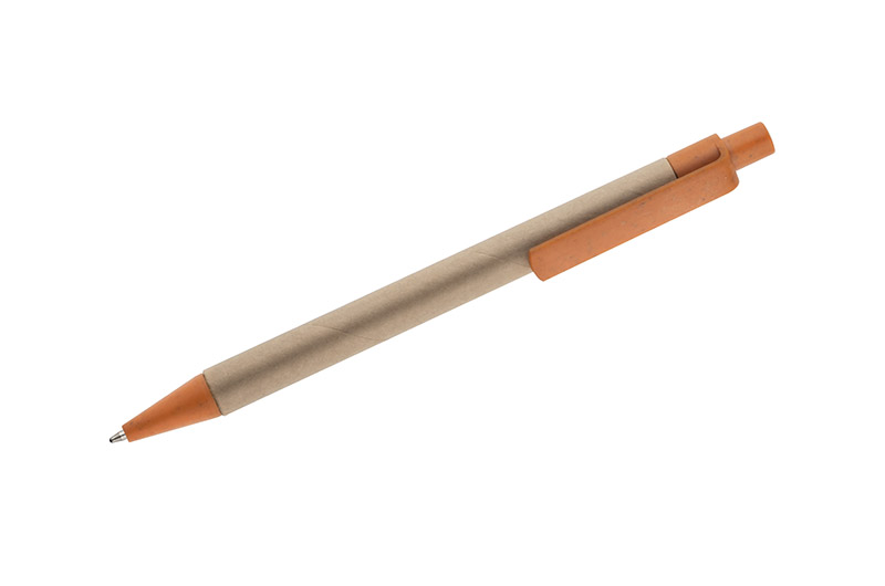 Długopis TIKO wykonany został z myślą o ponownym wykorzystaniu surowców. Jego korpus wykonany jest z papieru po recyklingu, a końcówki z tworzywa z domieszką słomy, która ogranicza ilość tworzywa sztucznego potrzebnego do produkcji. Prosty, ponadczasowy wzór. Długopis automatyczny. Wkład typu X20 w kolorze niebieskim.