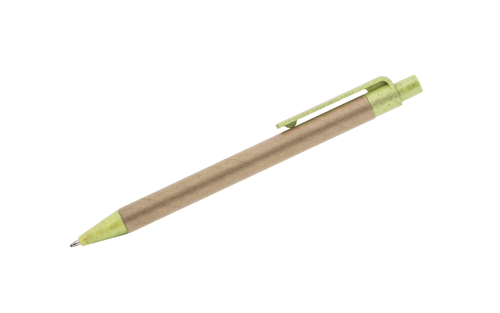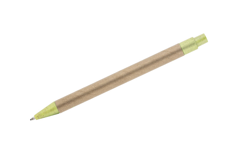 Długopis TIKO wykonany został z myślą o ponownym wykorzystaniu surowców. Jego korpus wykonany jest z papieru po recyklingu, a końcówki z tworzywa z domieszką słomy, która ogranicza ilość tworzywa sztucznego potrzebnego do produkcji. Prosty, ponadczasowy wzór. Długopis automatyczny. Wkład typu X20 w kolorze niebieskim.