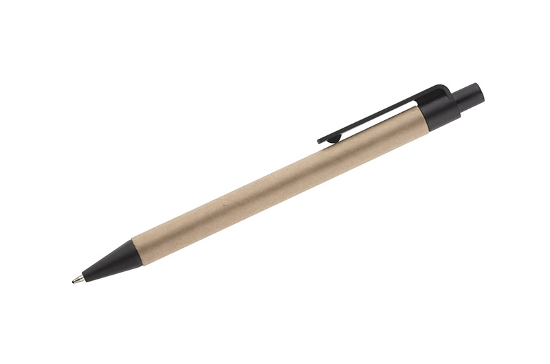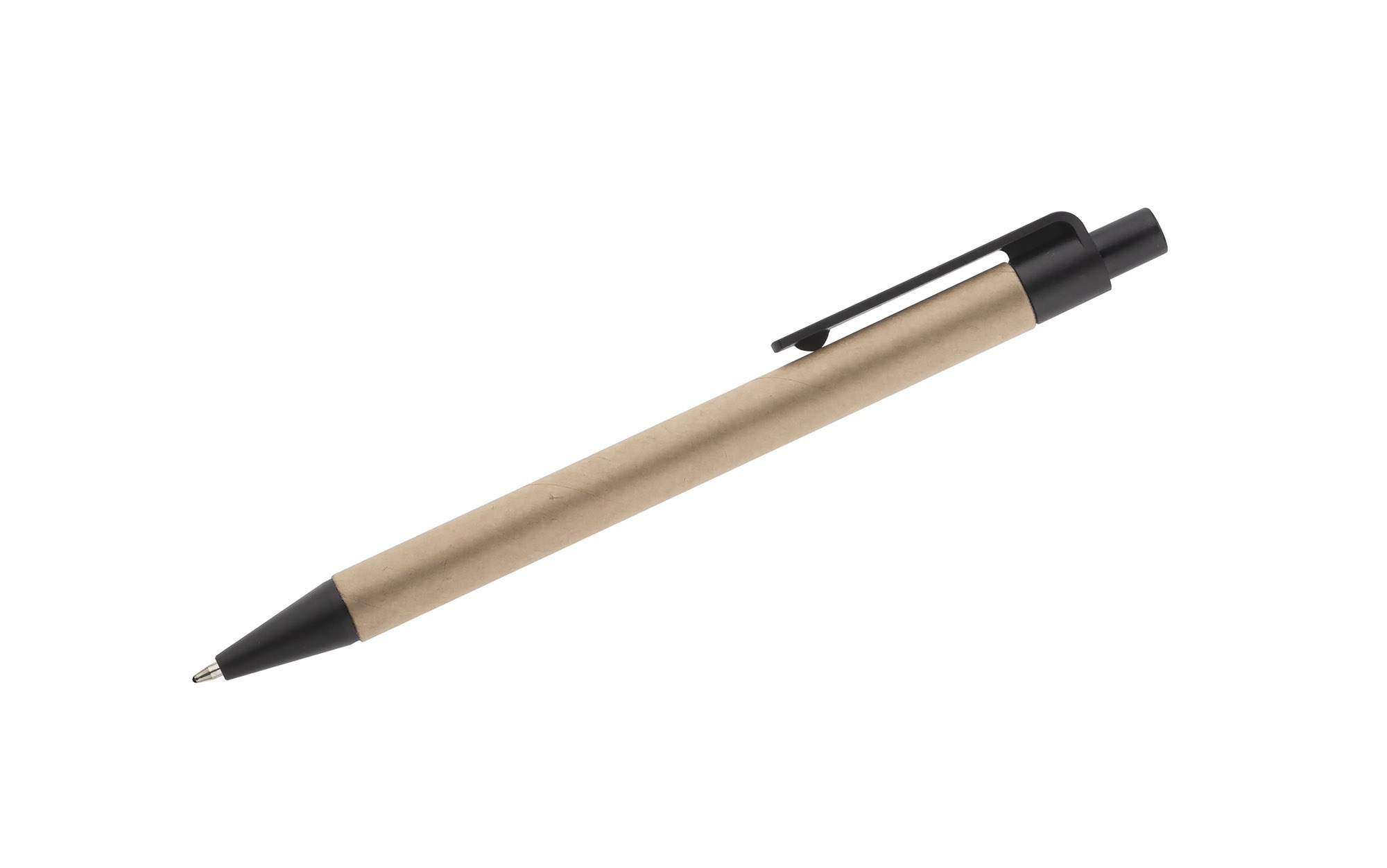 Długopis TIKO wykonany został z myślą o ponownym wykorzystaniu surowców. Jego korpus wykonany jest z papieru po recyklingu, a końcówki z tworzywa z domieszką słomy, która ogranicza ilość tworzywa sztucznego potrzebnego do produkcji. Prosty, ponadczasowy wzór. Długopis automatyczny. Wkład typu X20 w kolorze niebieskim.