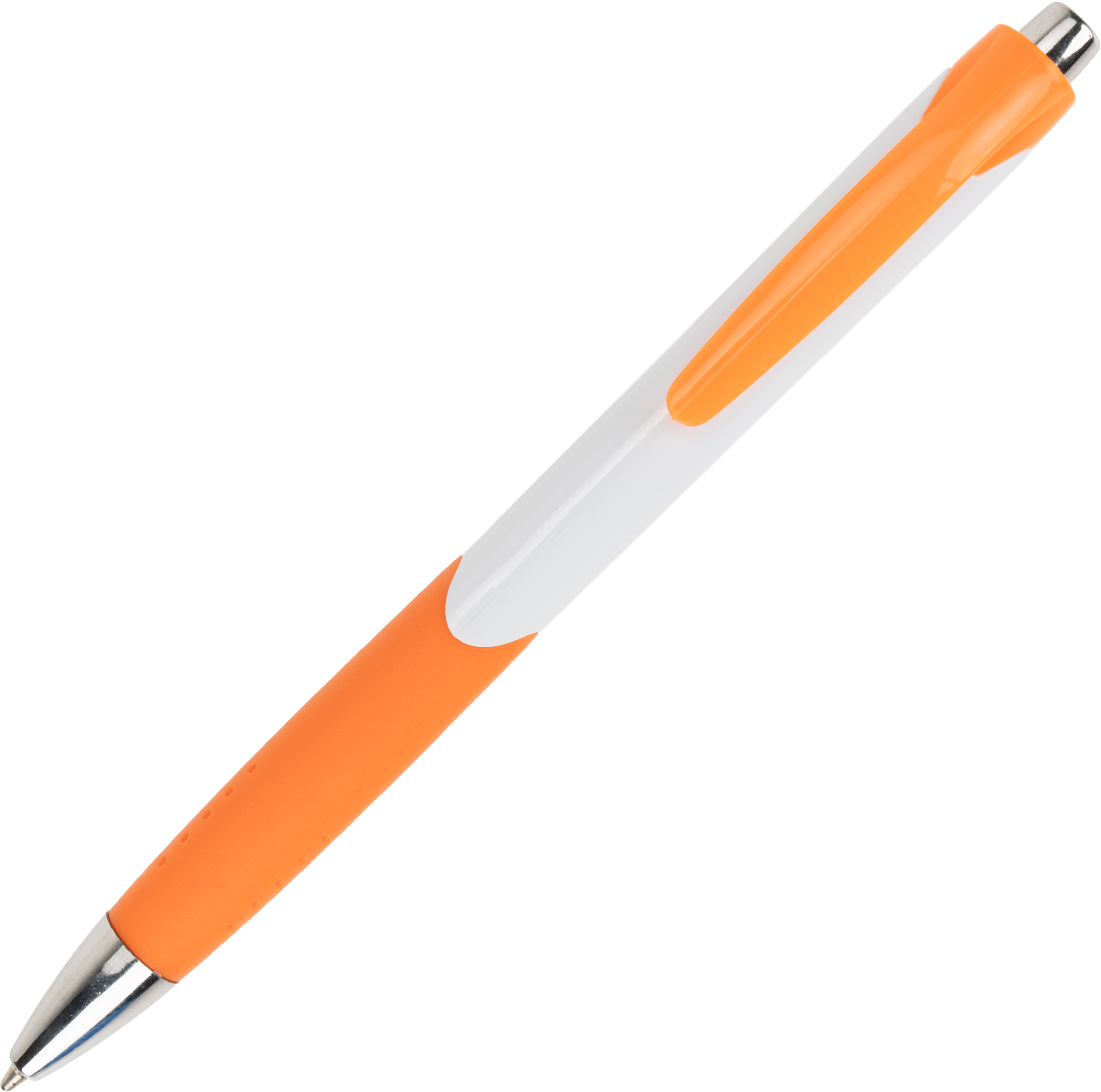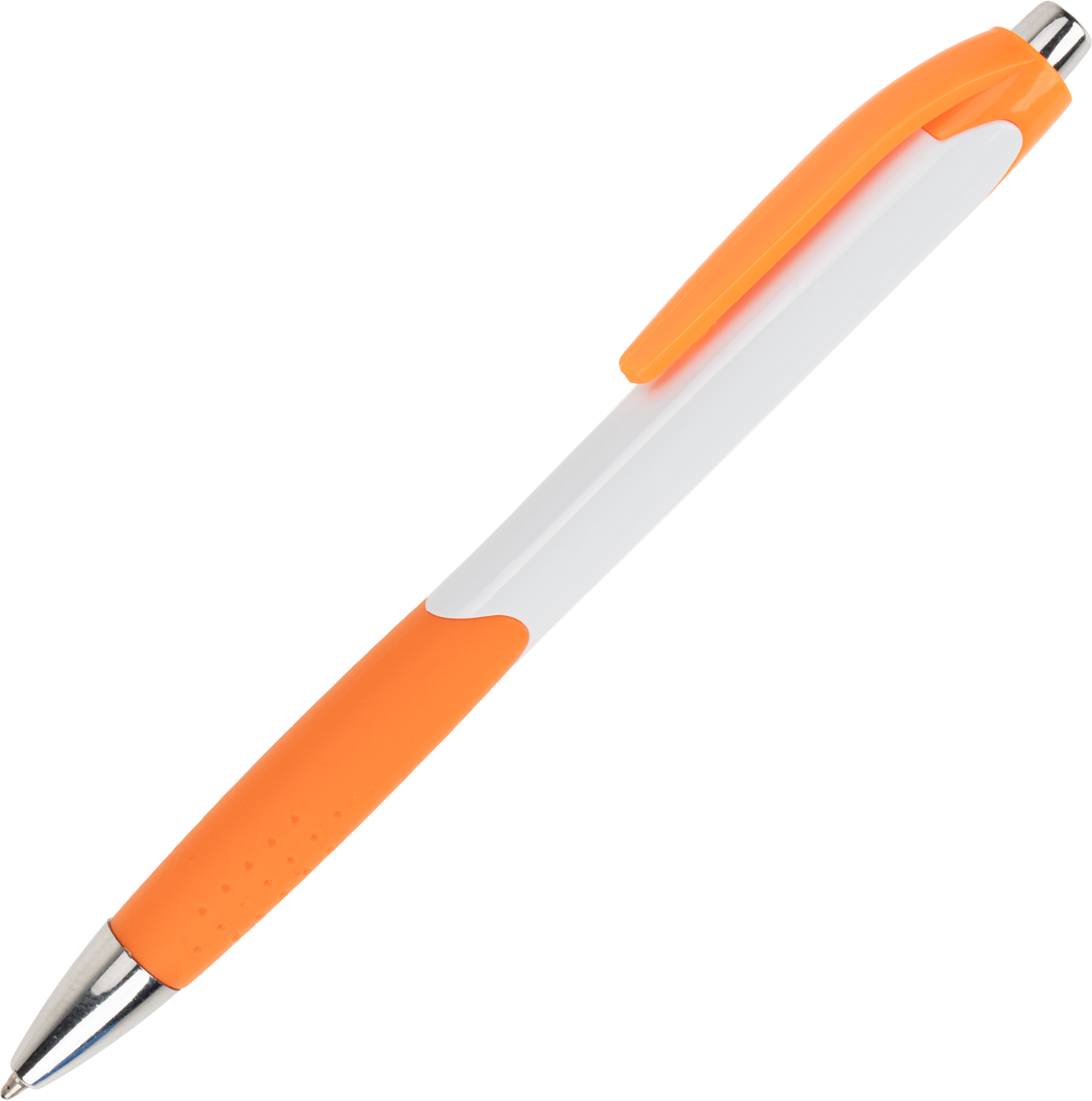 Długopis plastikowy, wyposażony w klips i gumową strefę chwytu oraz niebieski wkład.