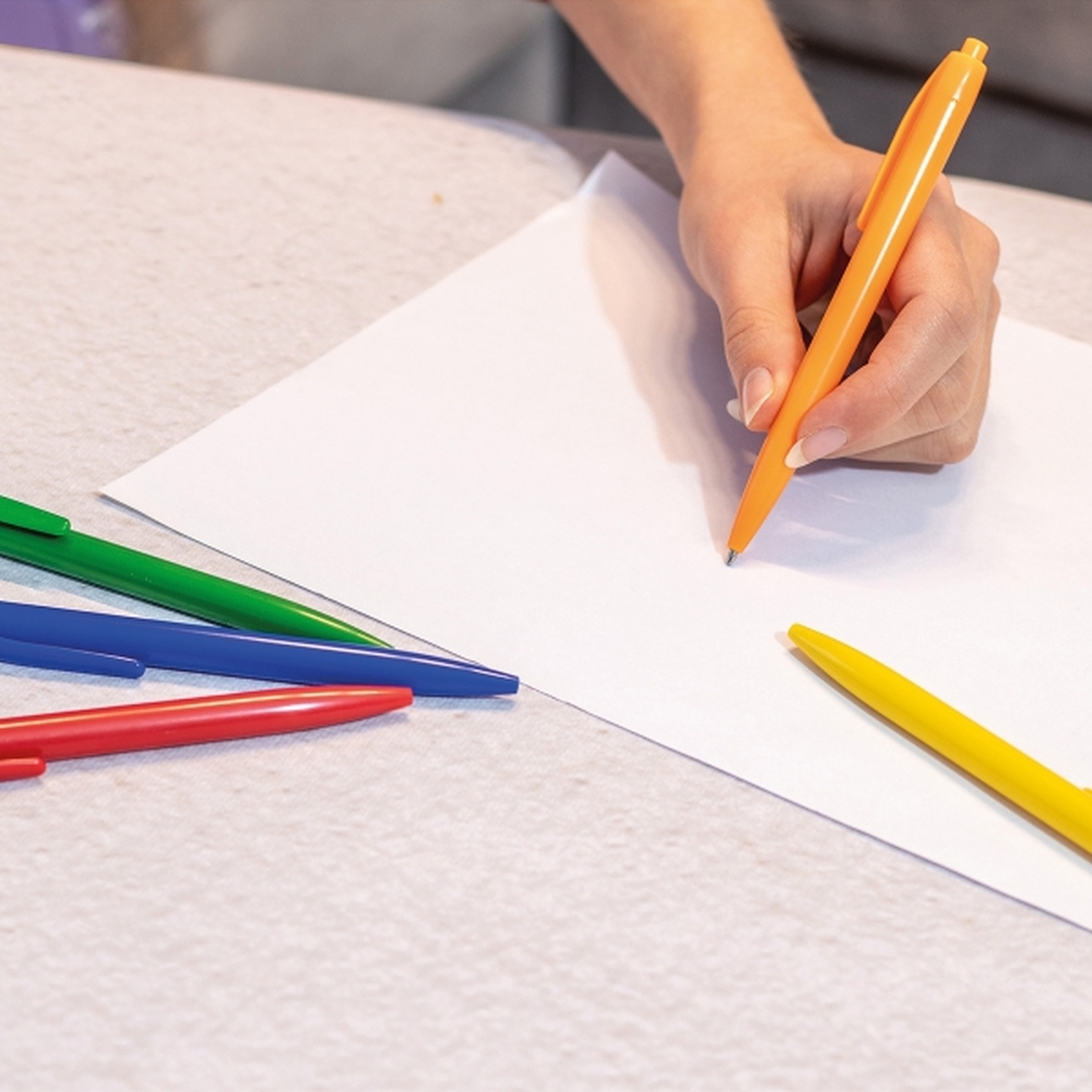 Plastikowy długopis z niebieskim wkładem to praktyczne i niezawodne narzędzie do codziennego pisania. Jego lekka konstrukcja zapewnia komfort użytkowania, a płynnie piszący niebieski wkład sprawia, że każda notatka jest czytelna i estetyczna.Klasyczny design sprawdzi się zarówno w biurze jak i w szkole. To funkcjonalne akcesorium, które łączy prostotę z wygodą, stanowiąc idealny wybór na co dzień.