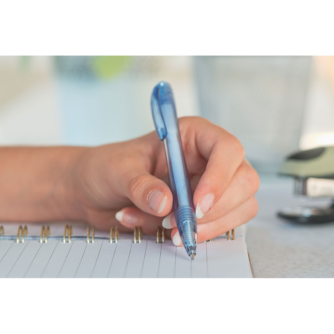 Długopis plastikowy wykonany z materiału RPET to doskonały wybór dla osób, które cenią prostotę i funkcjonalność. Wykonany z półprzeźroczystego plastiku PET pochodzącego z recyklingu, długopis łączy trwałość z ekologicznymi właściwościami.Z niebieskim wkładem piszącym, zapewnia płynność i komfort podczas pisania. Jego elegancki wygląd i prosty design sprawiają, że doskonale sprawdzi się zarówno w codziennym użytkowaniu, jak i jako praktyczny gadżet promocyjny.