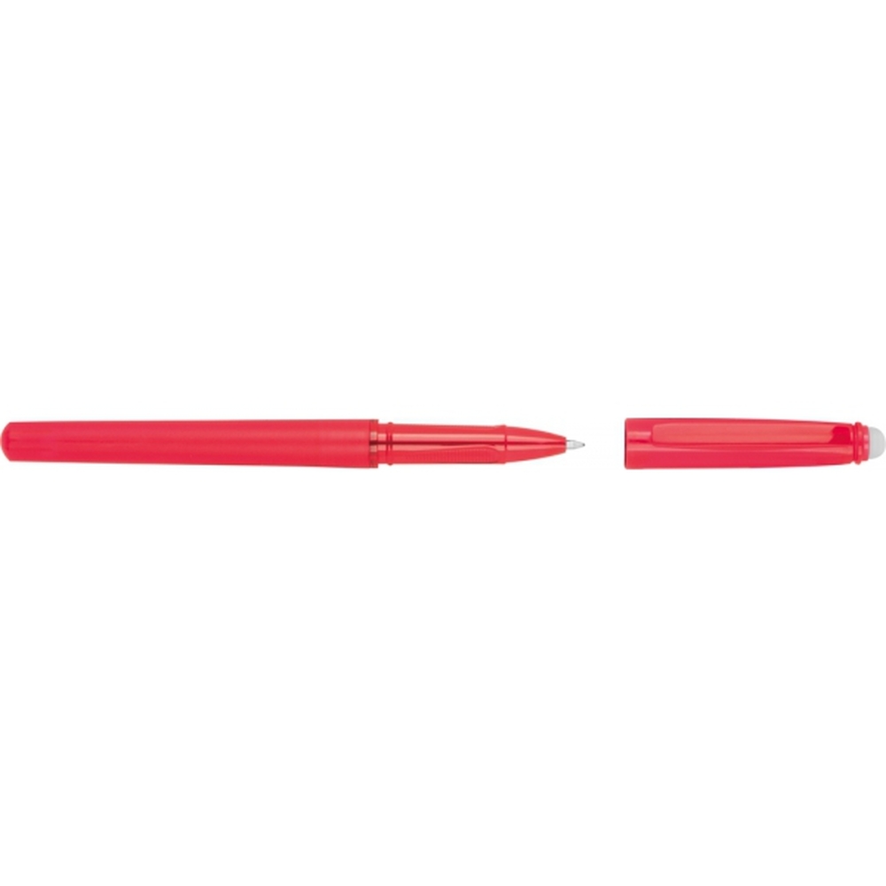 Plastikowy długopis żelowy to praktyczne narzędzie do pisania, które łączy precyzję i wygodę użytkowania. Wyposażony w specjalny wkład, pozwala na płynne pisanie, a w razie potrzeby na szybkie poprawki dzięki gumce do mazania umieszczonej w zatyczce.Kolor wkładu odpowiada barwie korpusu, co ułatwia szybkie rozpoznanie odpowiedniego odcienia.