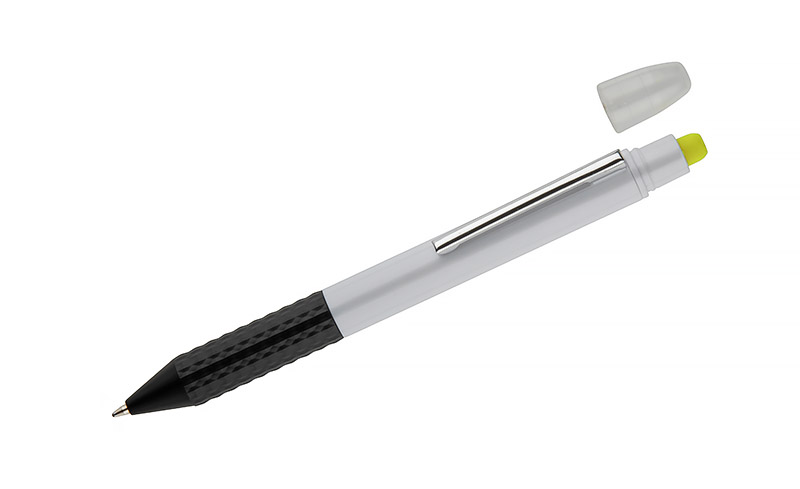 Długopis FLUO to praktyczne połączenie długopisu i zakreślacza w jednym korpusie. Wyposażony w mechanizm przekręcany oraz metalowy klips, łączy wygodę pisania z możliwością podkreślania notatek. Zakreślacz w formie kredki nie wysycha i jest zawsze gotowy do użycia. Kompaktowa konstrukcja sprawia, że FLUO sprawdzi się w biurze, na uczelni i w podróży.