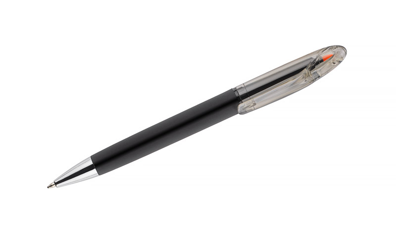 HILIG to dwa przydatne gadżety w jednym. Na górze tradycyjnego długopisu został umieszczony zakreślacz w żywym kolorze. Pokryty gumową powłoką korpus długopisu jest niezwykle przyjemny w dotyku. Długopis z mechanizmem typu twist, wkład długopisu w kolorze niebieskim.