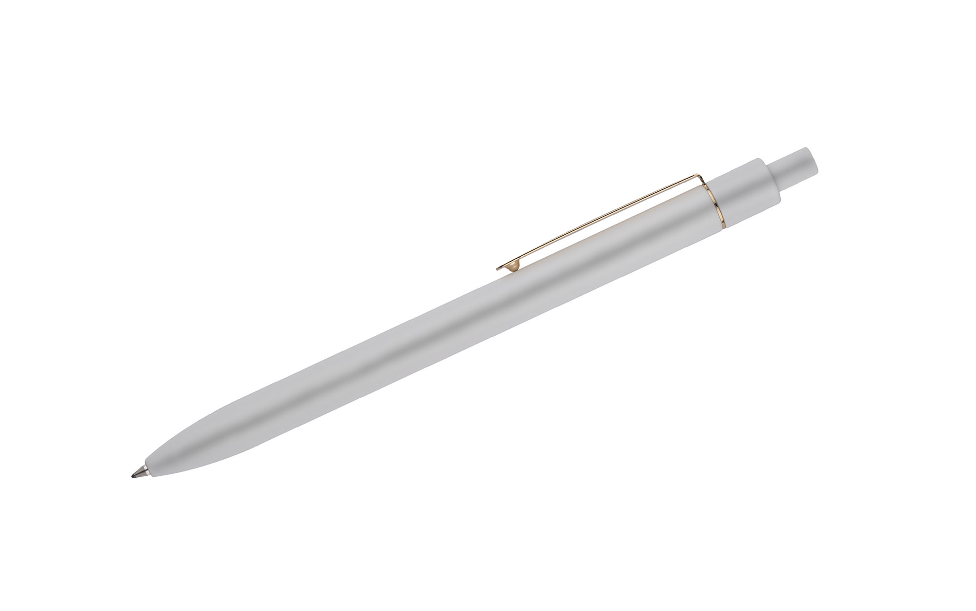 Stylowy długopis aluminiowy z matowym wykończeniem i klipem w kolorze złotym.