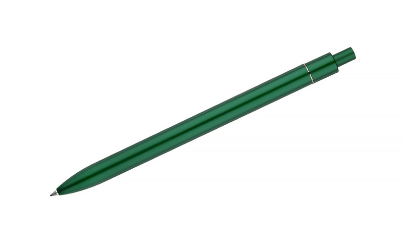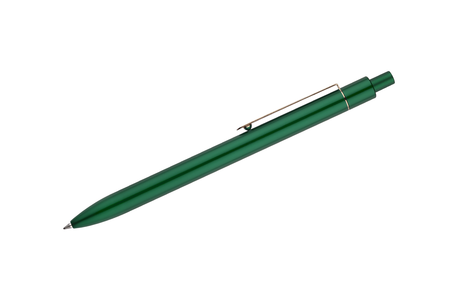 Stylowy długopis aluminiowy z matowym wykończeniem i klipem w kolorze złotym.