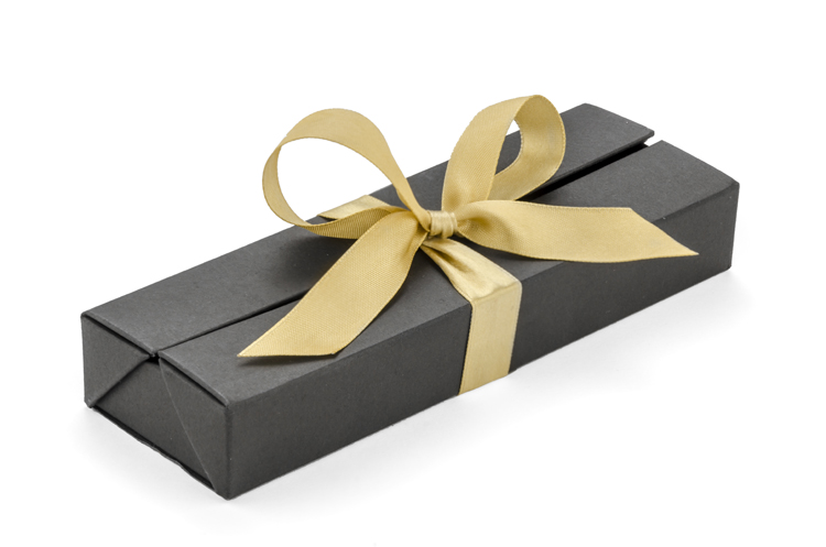 Etui do pakowania artykułów piśmienniczych wykonane z papieru. Zamykane za pomocą wstążki, którą można zawiązać w ozdobną kokardę.