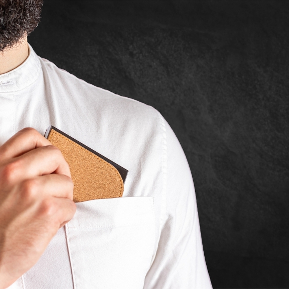 Wnętrze etui wyściełane jest materiałową wyściółką, co dodatkowo chroni wizytówki przed uszkodzeniami.Korkowa powierzchnia nadaje mu wyjątkowego charakteru, łącząc nowoczesny design z ekologicznymi materiałami. To elegancki dodatek do biura, który doskonale sprawdzi się w codziennej pracy, dbając o porządek i profesjonalny wygląd.