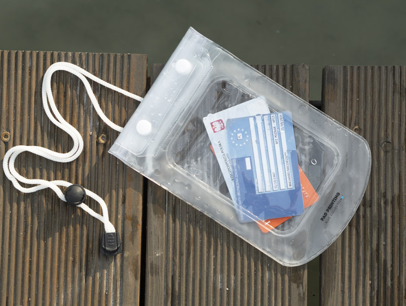 Etui wodoodporne FALLA służy do bezpiecznego przechowywania rzeczy zabezpieczając je przed zamoczeniem. Posiada przezroczyste okienko umożliwiające korzystanie z telefonu z ekranem dotykowym, a także sznurek umożliwiający zawieszenie etui na szyi.