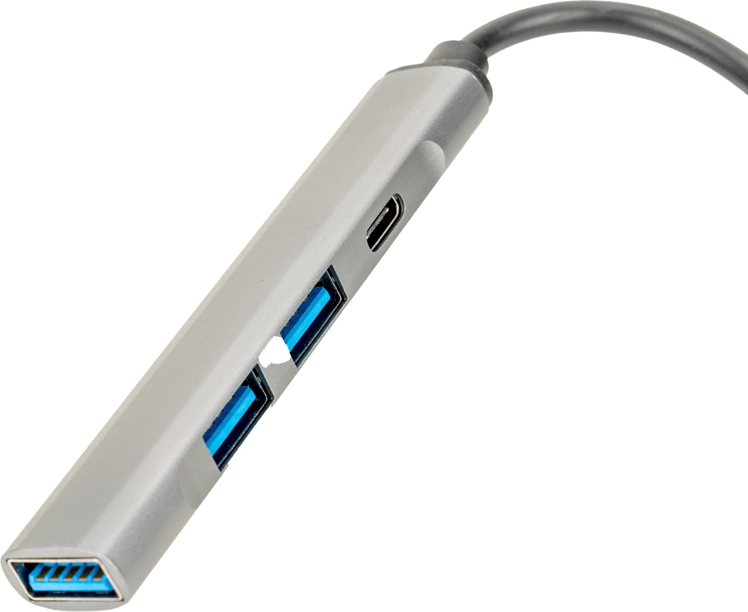 HUB posiada kabel na USB typu C, który gwarantuje stabilne połączenie z komputerem lub innymi urządzeniami. Dodatkowym atutem jest możliwość zamieszczenia precyzyjnego grawera na powierzchni rozgałęźnika, co czyni z niego idealny nośnik reklamy lub biurowy, personalizowany prezent.Cechy ogólne:Materiał: aluminium, elektronika3 wejścia USB, 1 wejście typu CMoc: 5.0V 500 mA.