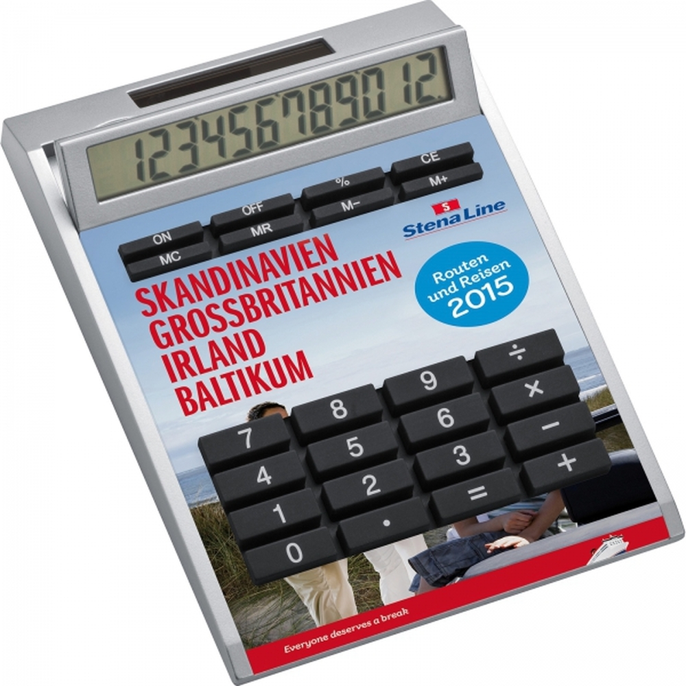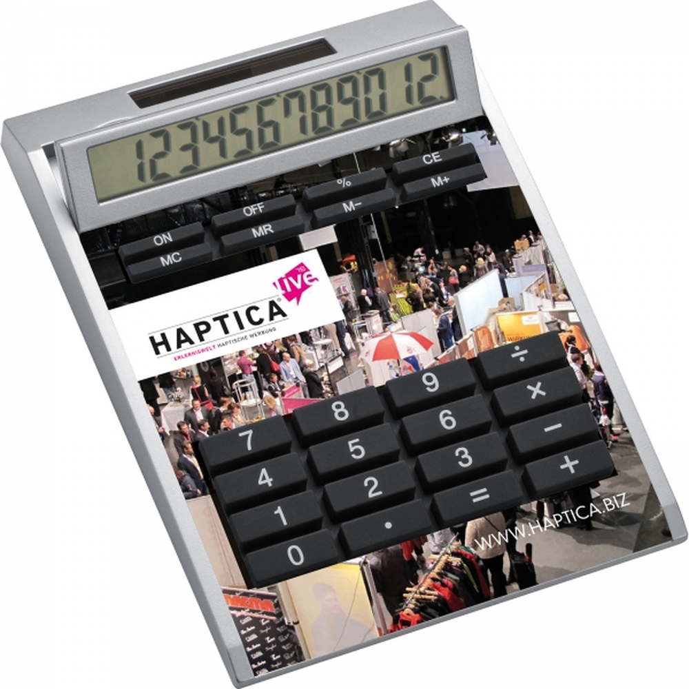 Kalkulator CrisMa to elegancka i funkcjonalna propozycja, która łączy nowoczesny design z niezawodną wydajnością. Posiada 12-cyfrowy wyświetlacz, a jego srebrna obudowa z białą nakładką daje możliwość pełnej personalizacji poprzez nadruk. Zasilany zarówno energią słoneczną, jak i baterią, zapewnia wygodę użytkowania w każdych warunkach.Idealny do biura, szkoły czy na prezent, ten kalkulator łączy prostotę obsługi z estetycznym wyglądem, stanowiąc praktyczne akcesorium, które świetnie wpasuje się w każde środowisko pracy.