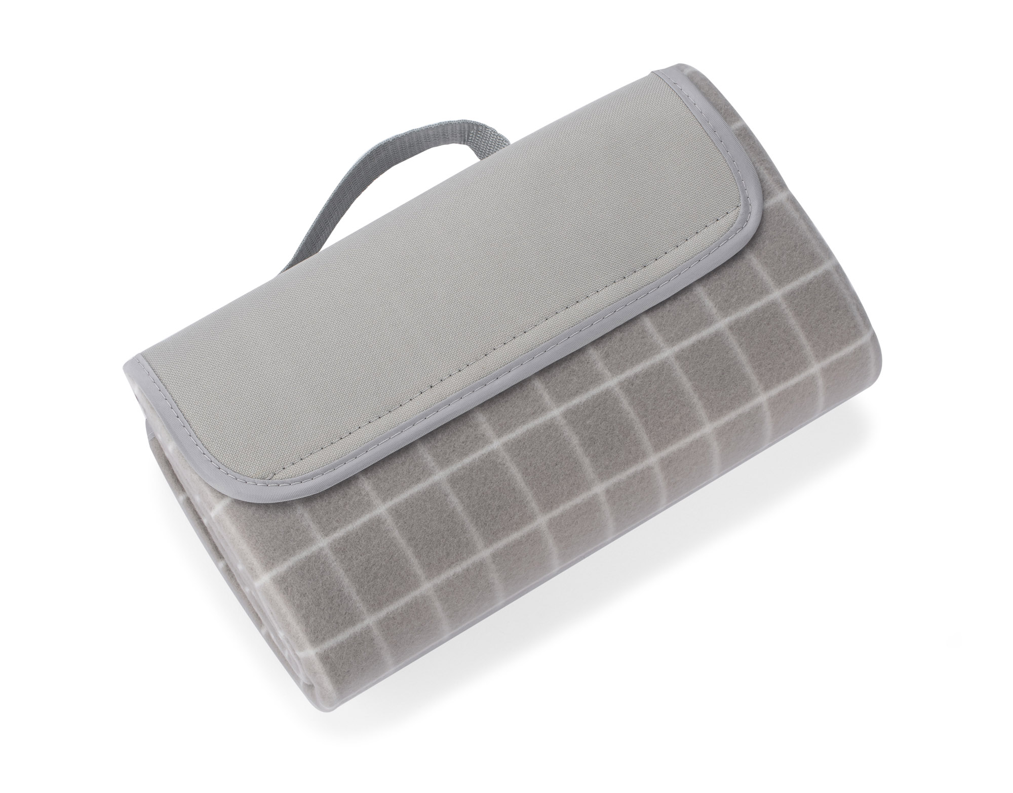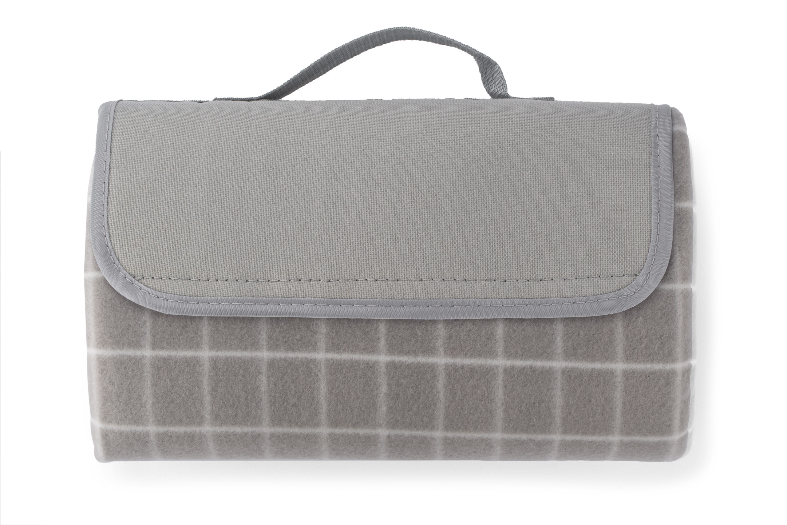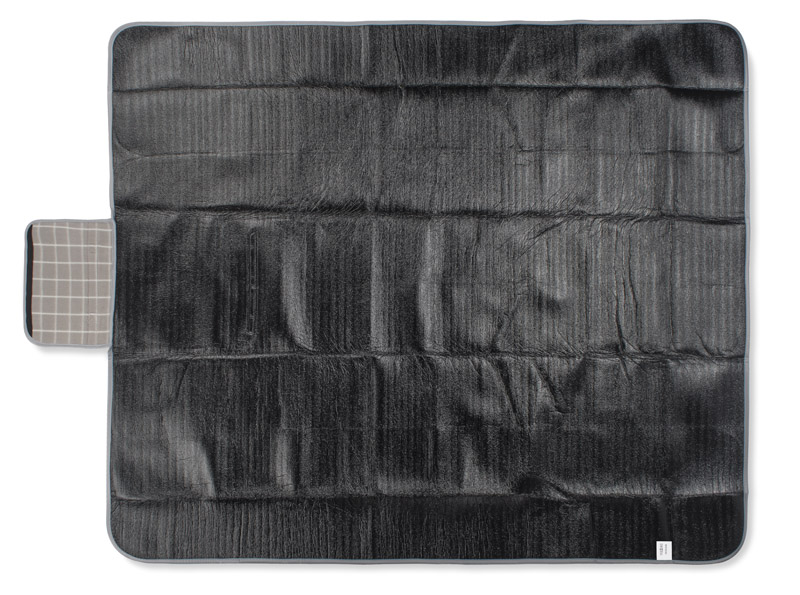 Koc piknikowy wykonany z gładkiego polaru w klasyczny wzór w kratę. Od spodu posiada wodoodporną warstwę PET. Po złożeniu klapa zapinana na rzep.