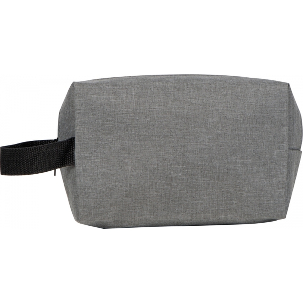 Kosmetyczka wykonana z poliestru pochodzącego z recyklingu, zamykana na zamek, z wygodnym uchwytem do przenoszenia.