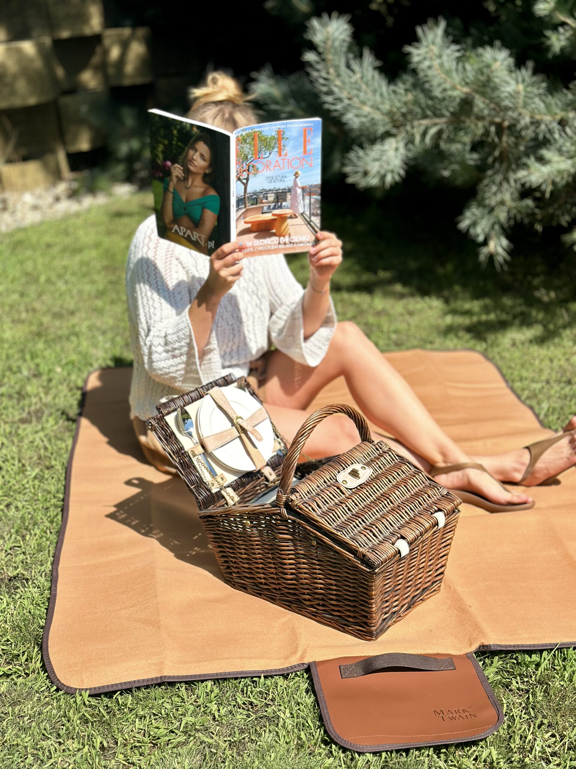 Elegancki i funkcjonalny kosz piknikowy zaopatrzony jest w plastikowe kieliszki, porcelanowe talerze, sztućce oraz nóż kelnerski, co czyni go idealnym wyborem na posiłek na łonie natury. Wnętrze kosza jest wyłożone materiałem, który nie tylko dodaje estetyki, ale również zapewnia dodatkową ochronę dla zawartości. Kosz posiada również komorę chłodzącą, która chroni posiłki przed upałem, utrzymując je w odpowiedniej temperaturze przez dłuższy czas.
