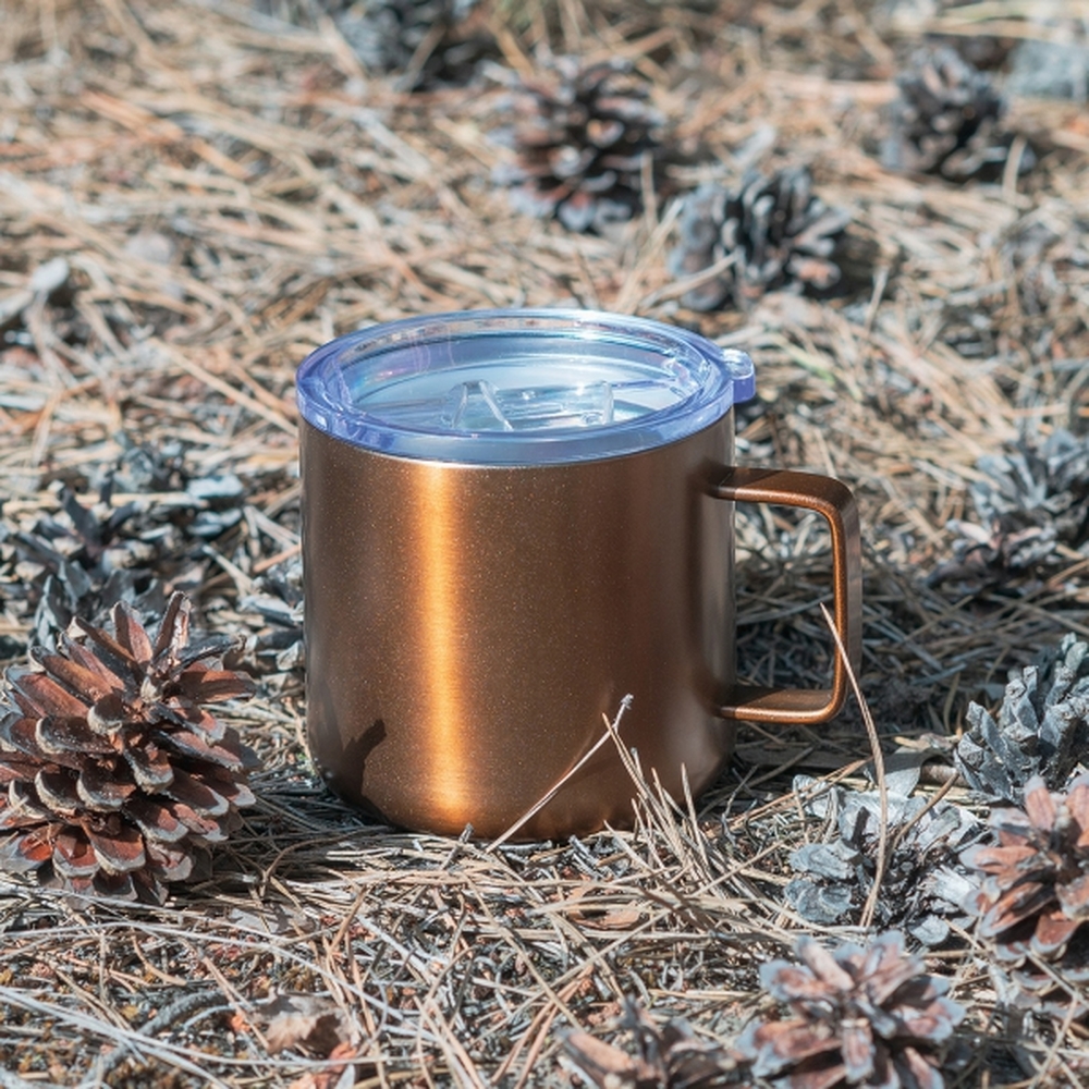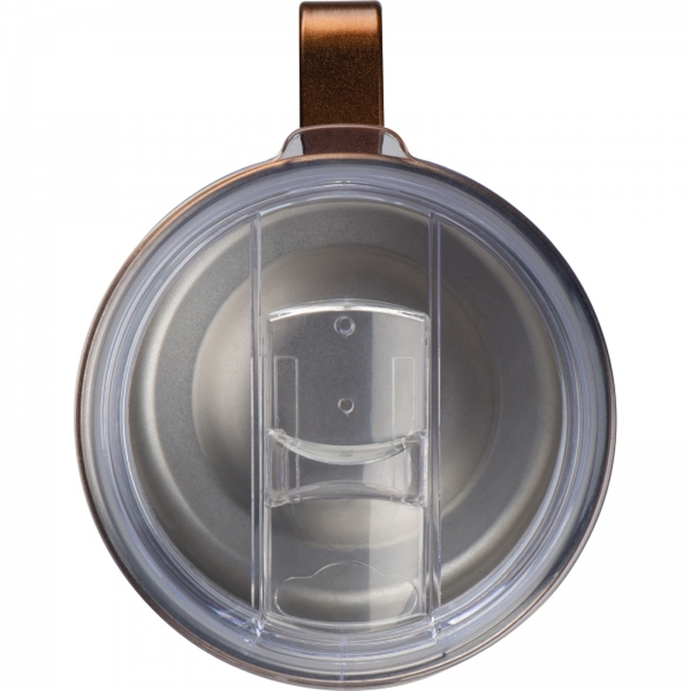 Kubek o podwójnych ściankach (izolacja próżniowa) ze stali nierdzewnej, z plastikową pokrywką. Pojemność 300ml.