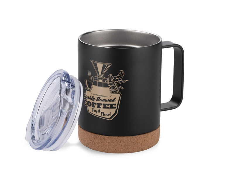 Kubek VICAM to połączenie klasycznego wyglądu kubka z funkcjonalnością jaką jest termoizolacja. Połączenie czerni z korkowym elementem sprawia, że kubek wygląda oryginalnie i ciekawie. Zamknięcie z tworzywa zabezpiecza przed przypadkowym wylaniem się płynu. Wykonany ze stali nierdzewnej.