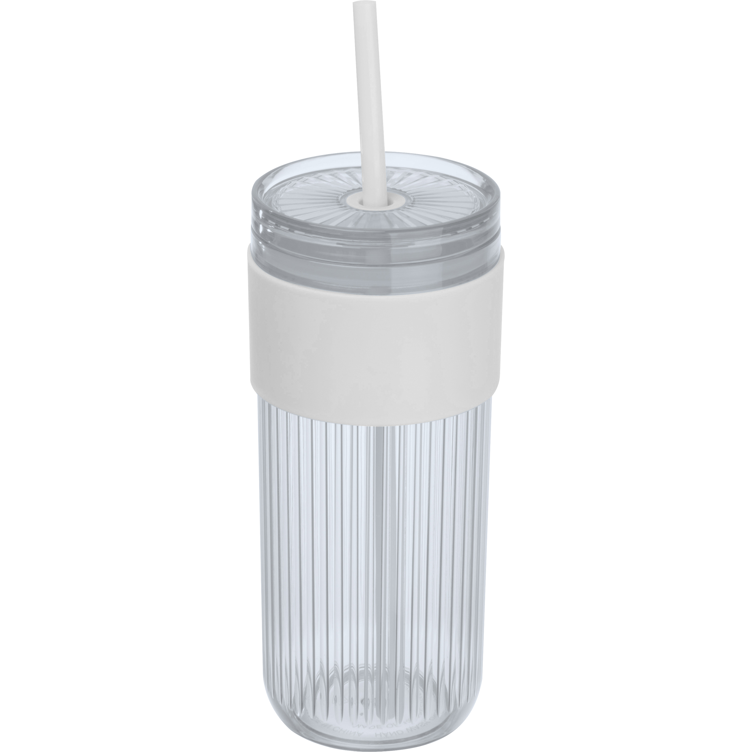 Ryflowany kubek, o pojemności 660 ml, ze słomką do picia i gumową strefą uchwytu.