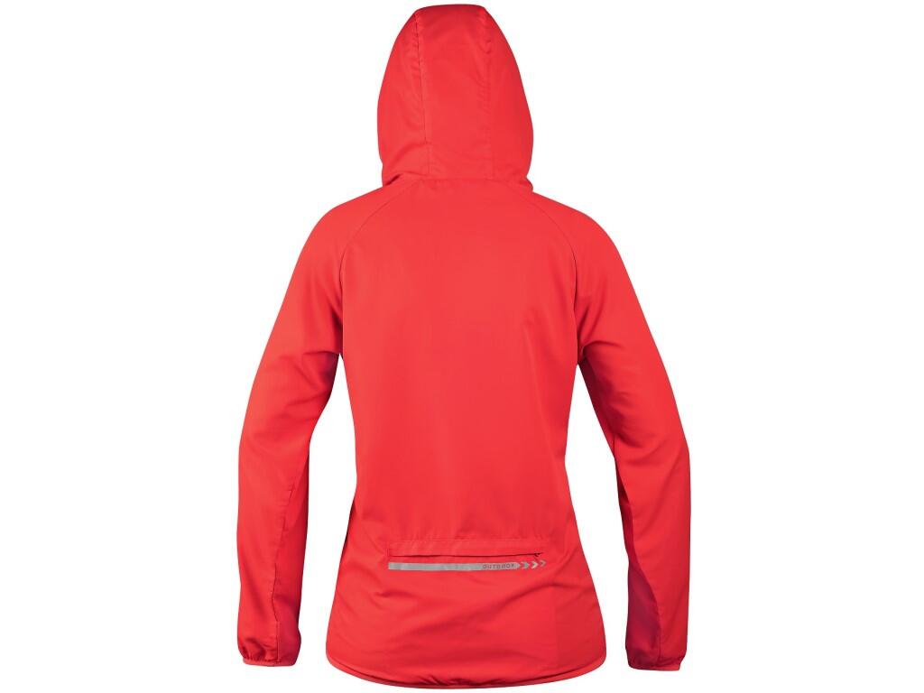 Damska ultralekka kurtka z kapturem i odblaskowymi elementami. Jest wyposażona w zapinane na zamek kieszenie boczne i tylną kieszeń z krytym zamkiem, do której kurtkę można łatwo złożyć. Pas i rękawy wykończone są elastyczną gumką. Kurtka jest wykonana z lekkiego materiału z wykończeniem hydrofobowym. Powłoka hydrofobowa jest stopniowo tracona podczas prania, ale można ją przywrócić za pomocą odpowiednich sprayów impregnujących.