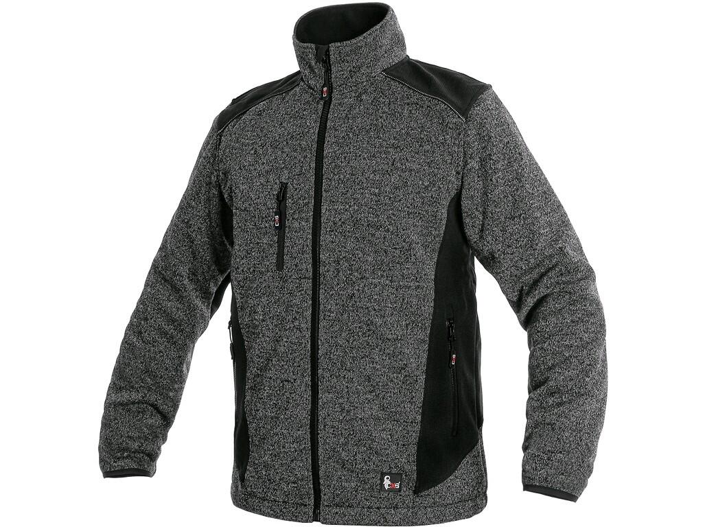 Męska kurtka z dzianiny, kombinacja materiałów – ramiona, łokcie, wzmocnione panele z membraną TPU, ściągacz w dolnej części, rękawy zakończone gumką, elementy odblaskowe, kołnierz i wewnętrzna strona z polaru, dwie dolne kieszenie na zamek.