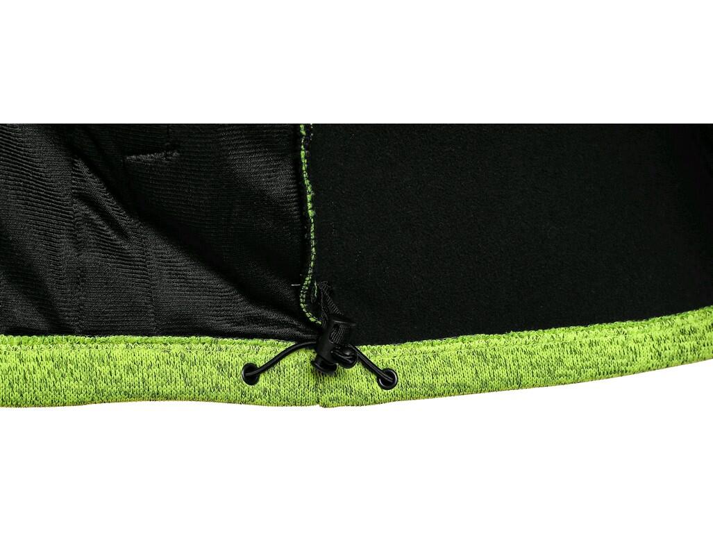 Męska kurtka z dzianiny, kombinacja materiałów – ramiona, łokcie, wzmocnione panele z membraną TPU, ściągacz w dolnej części, rękawy zakończone gumką, elementy odblaskowe, kołnierz i wewnętrzna strona z polaru, dwie dolne kieszenie na zamek.