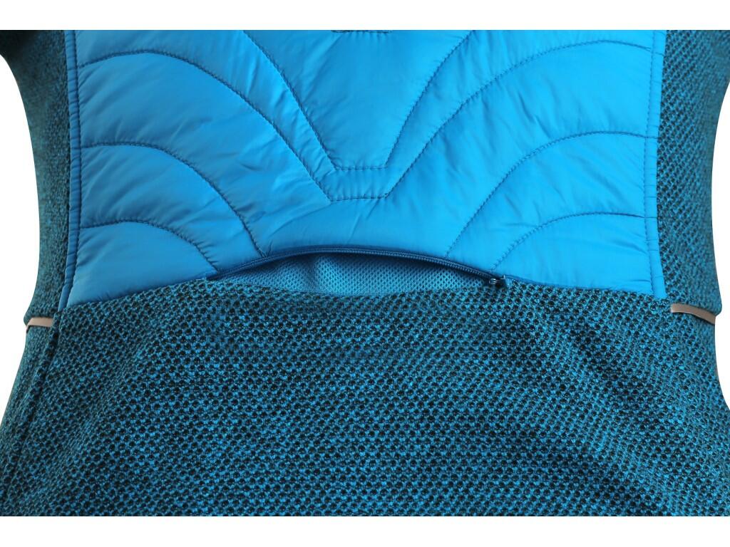 Damska kurtka na czas wolny z kombinowanych materiałów. Pikowana część jest lekko ocieplona, kaptur, boki i rękawy wykonane są z przyjemnej dzianiny. Kurtka posiada 2 boczne kieszenie na zamek, wentylację na zamek na plecach i elementy odblaskowe. Pas i rękawy wykończone są elastyczną gumką.