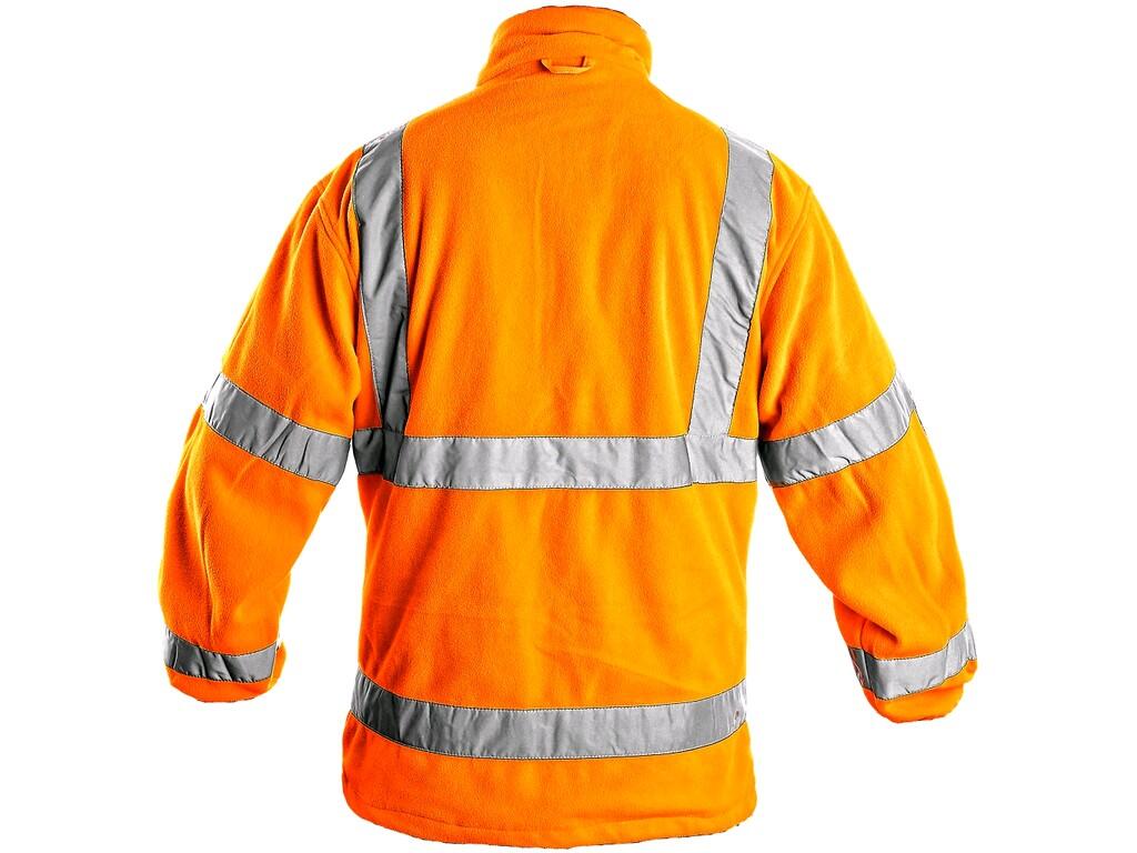 Męska kurtka ostrzegawcza z polaru, paski odblaskowe. Mankiet w gumkę, kieszeń na piersi zapinana na zamek, boczne kieszenie na zamek, ściągacz w dolnej części, podszewka z siatki. Zalecane zastosowanie: budownictvo, prace drogowe, kierowcy, transport lotniczy i morski, logistyka, kierowcy ciężarówek, policja, ratownicy.