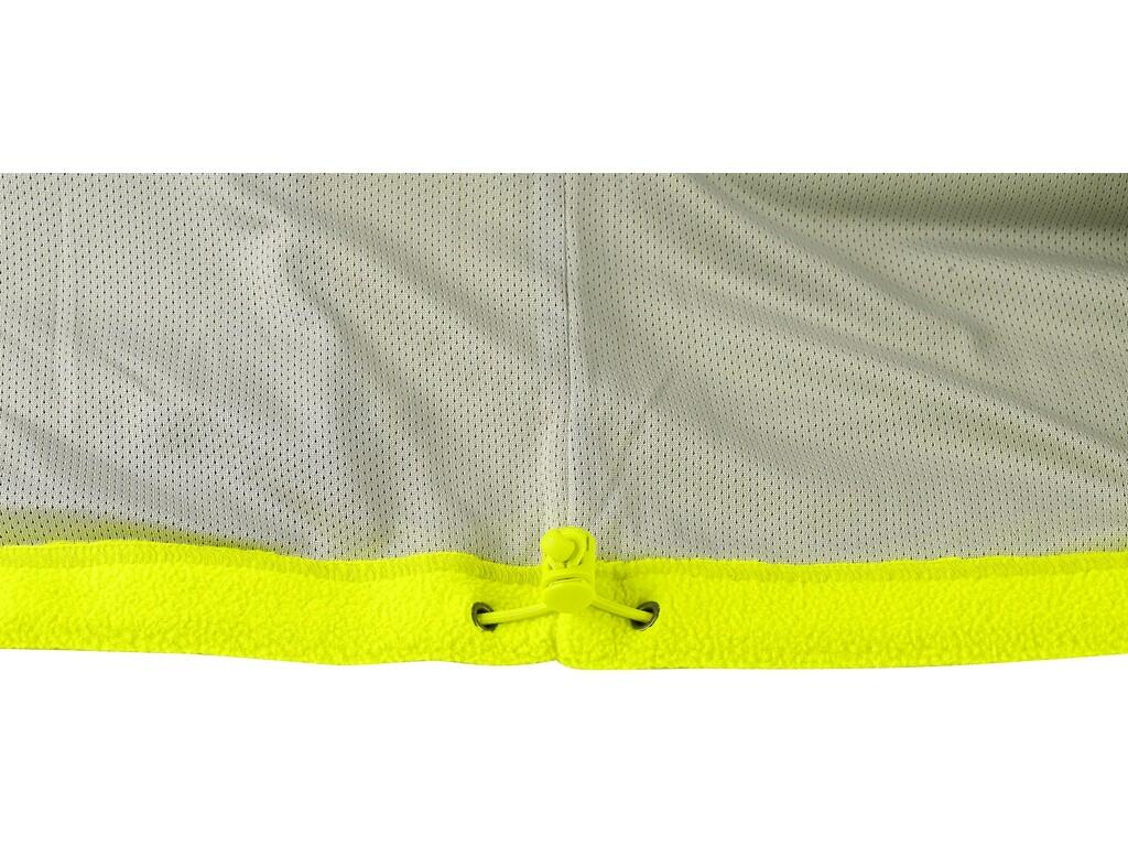 Męska kurtka ostrzegawcza z polaru, paski odblaskowe. Mankiet w gumkę, kieszeń na piersi zapinana na zamek, boczne kieszenie na zamek, ściągacz w dolnej części, podszewka z siatki. Zalecane zastosowanie: budownictvo, prace drogowe, kierowcy, transport lotniczy i morski, logistyka, kierowcy ciężarówek, policja, ratownicy.