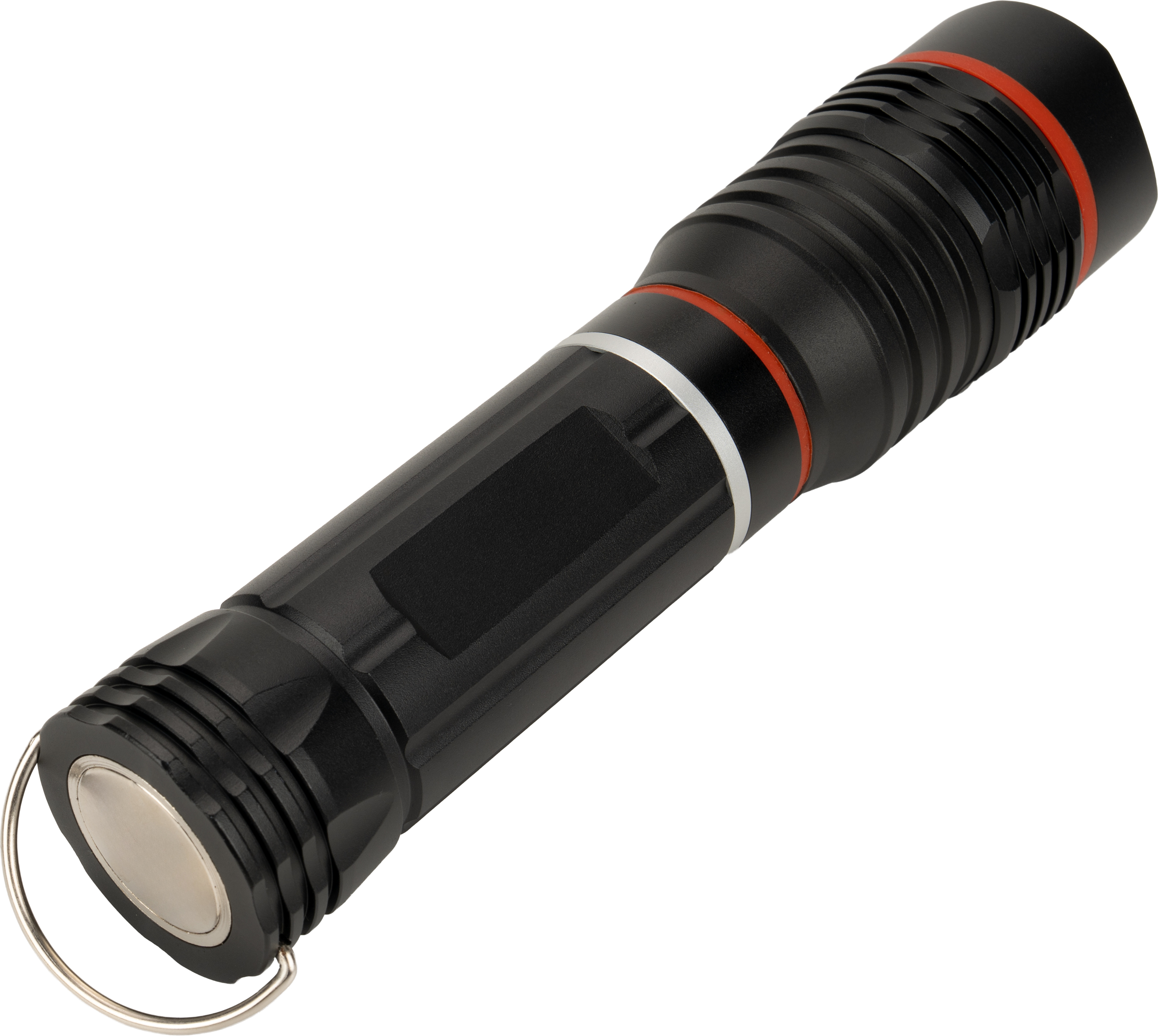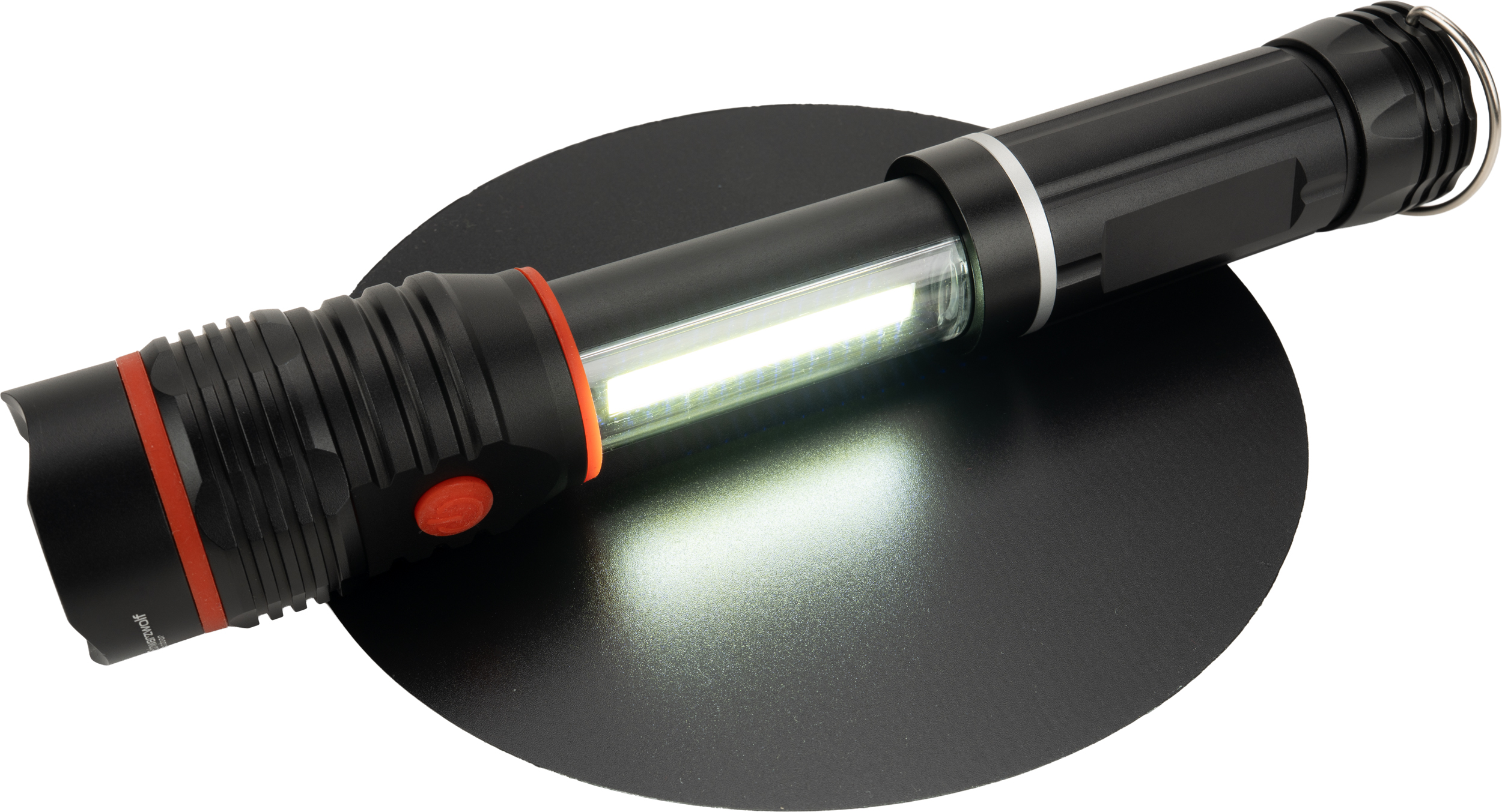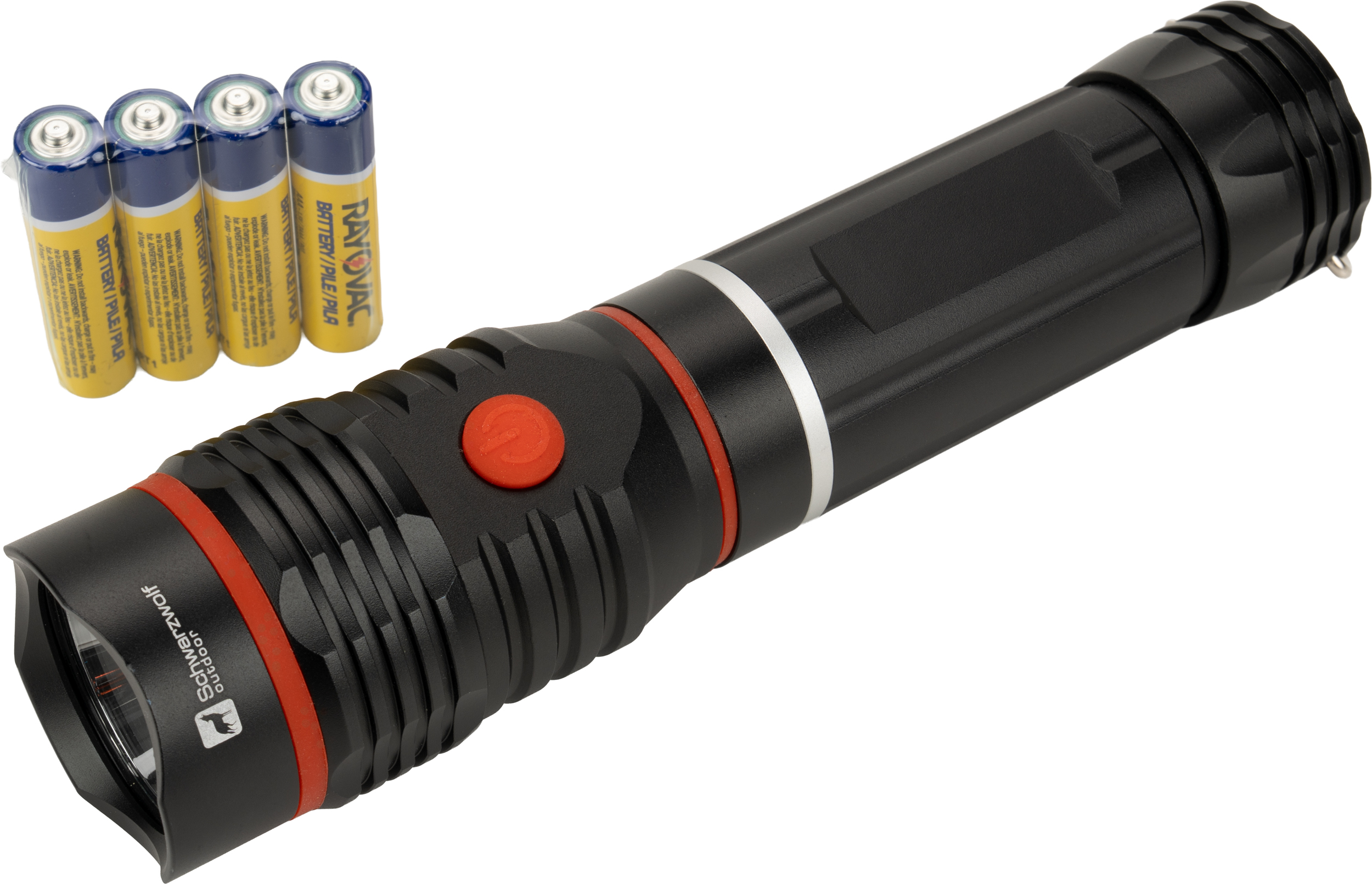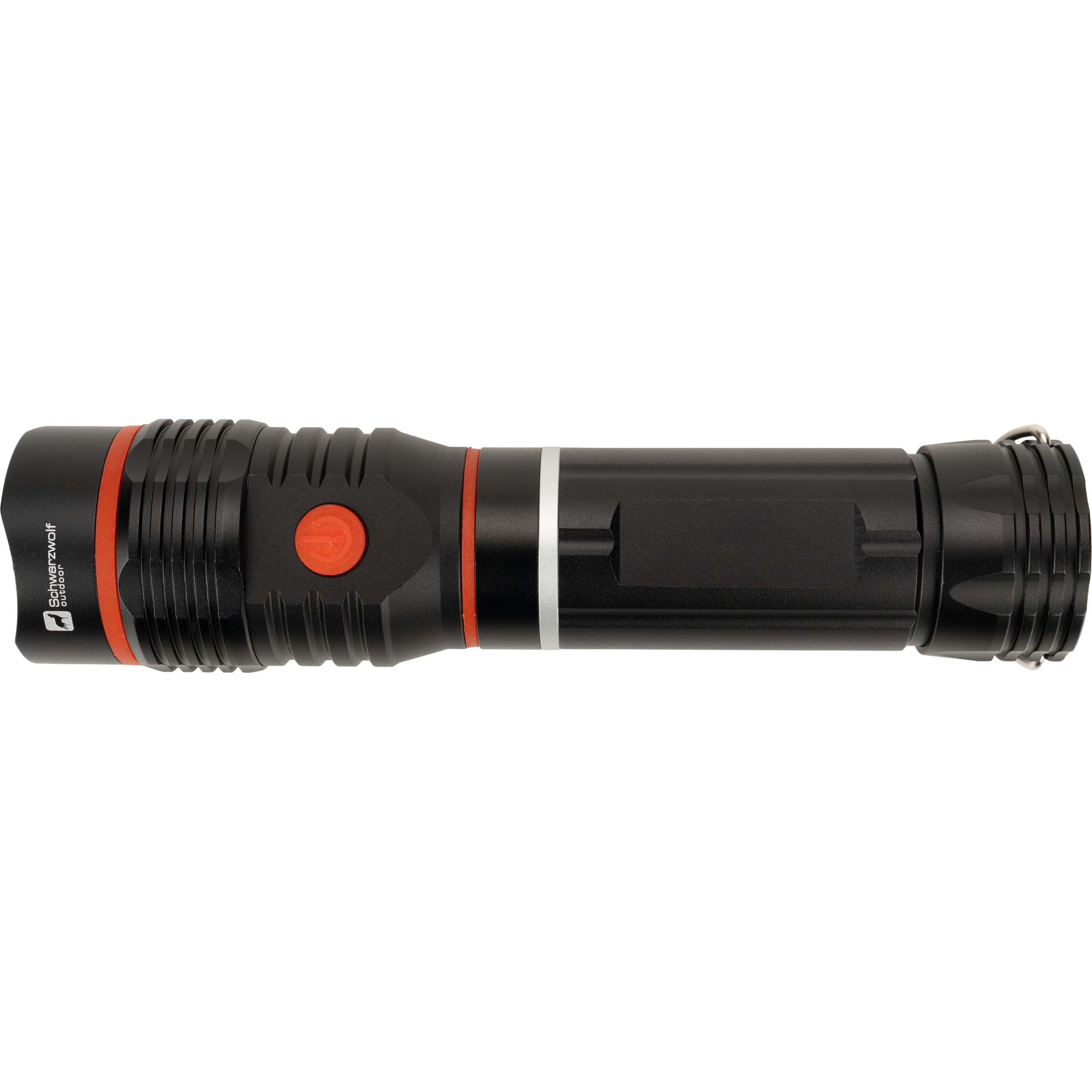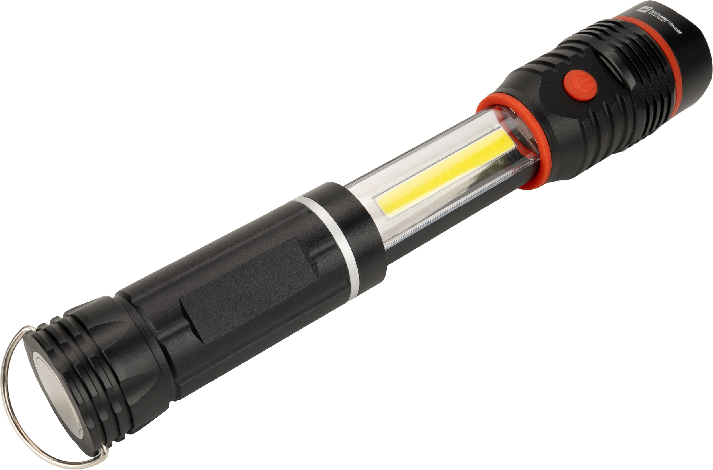 Latarka metalowa Schwarzwolf z diodą CREE XPE oraz intensywnie świecącą diodą COB w rozsuwanej części. Na końcówce latarki znajduje się magnes oraz haczyk do zawieszania. Bateria 4× AAA w zestawie. Jasność: CREE XPE: 130 lumenów; COB: 180 lumenów.