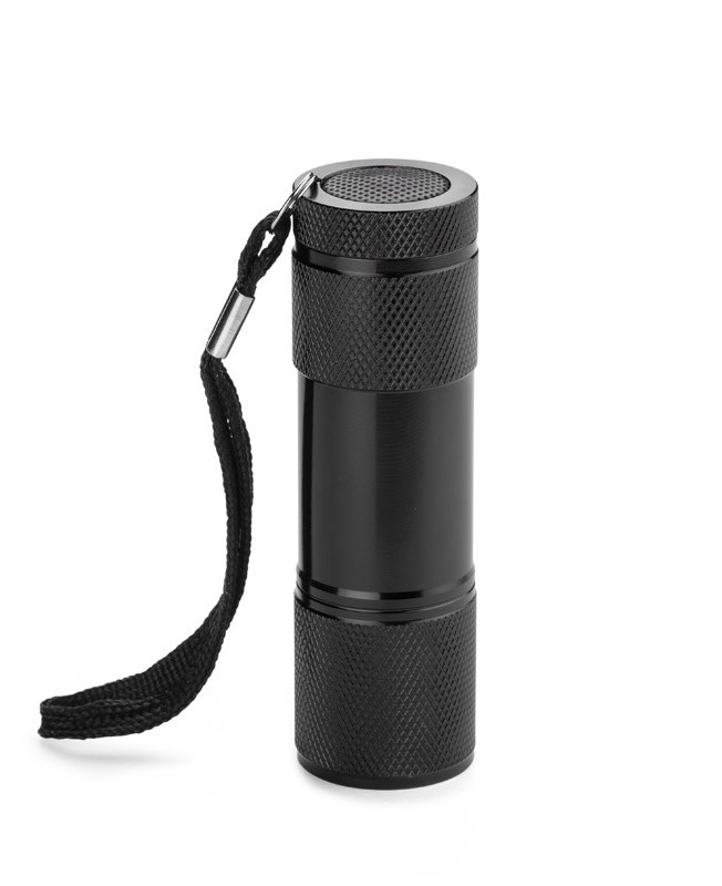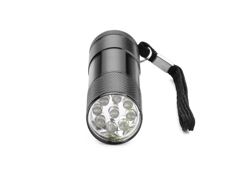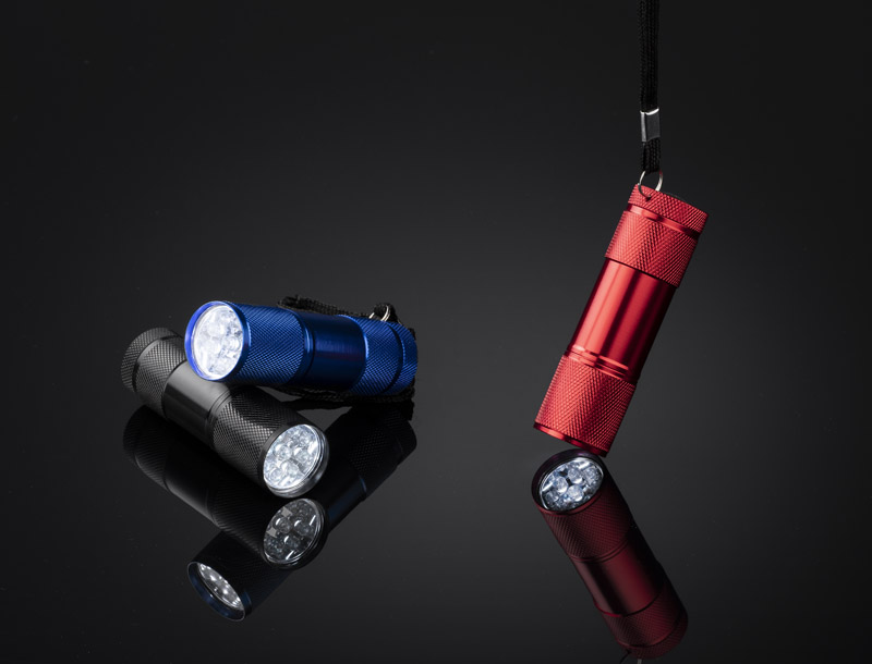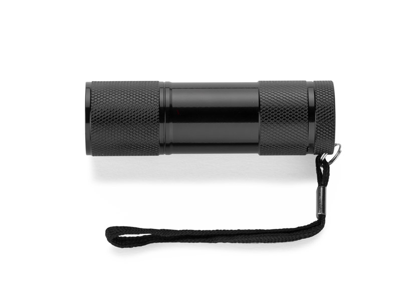 Metalowa latarka LED, 9-diodowa. Logo wygrawerujemy na korpusie latarki.