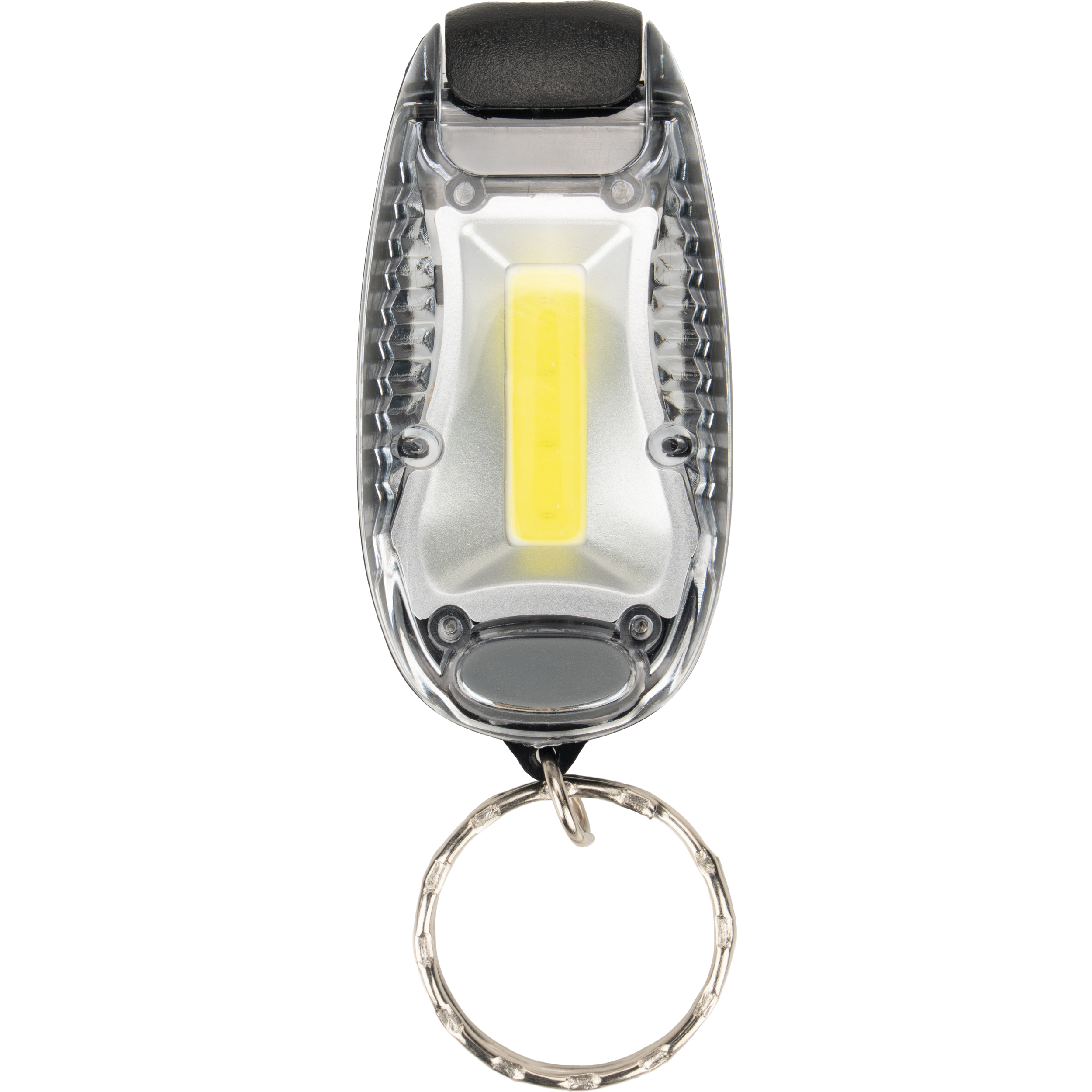 Mała latarka marki Schwarzwolf z diodą COB oraz funkcją migania. Latarkę można mocować za pomocą breloczka lub plastikowego klipsa. Jasność: 40 lumenów. Baterie 2 × 3 V CR2032 w zestawie.