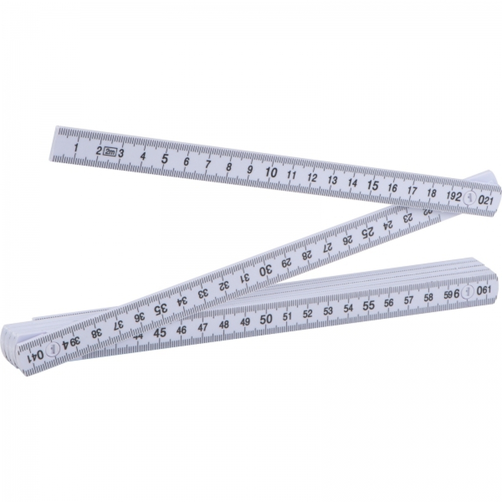 Składana miarka o długości 2 m (po rozłożeniu), wykonana z plastiku.