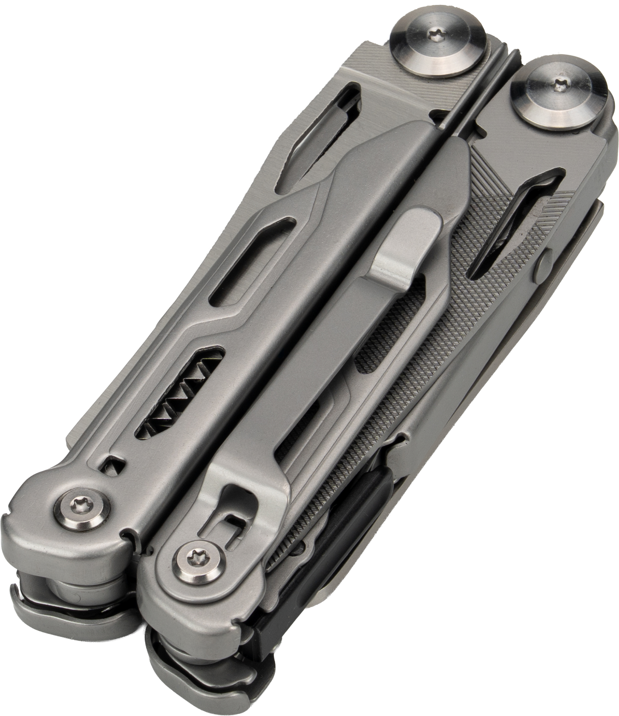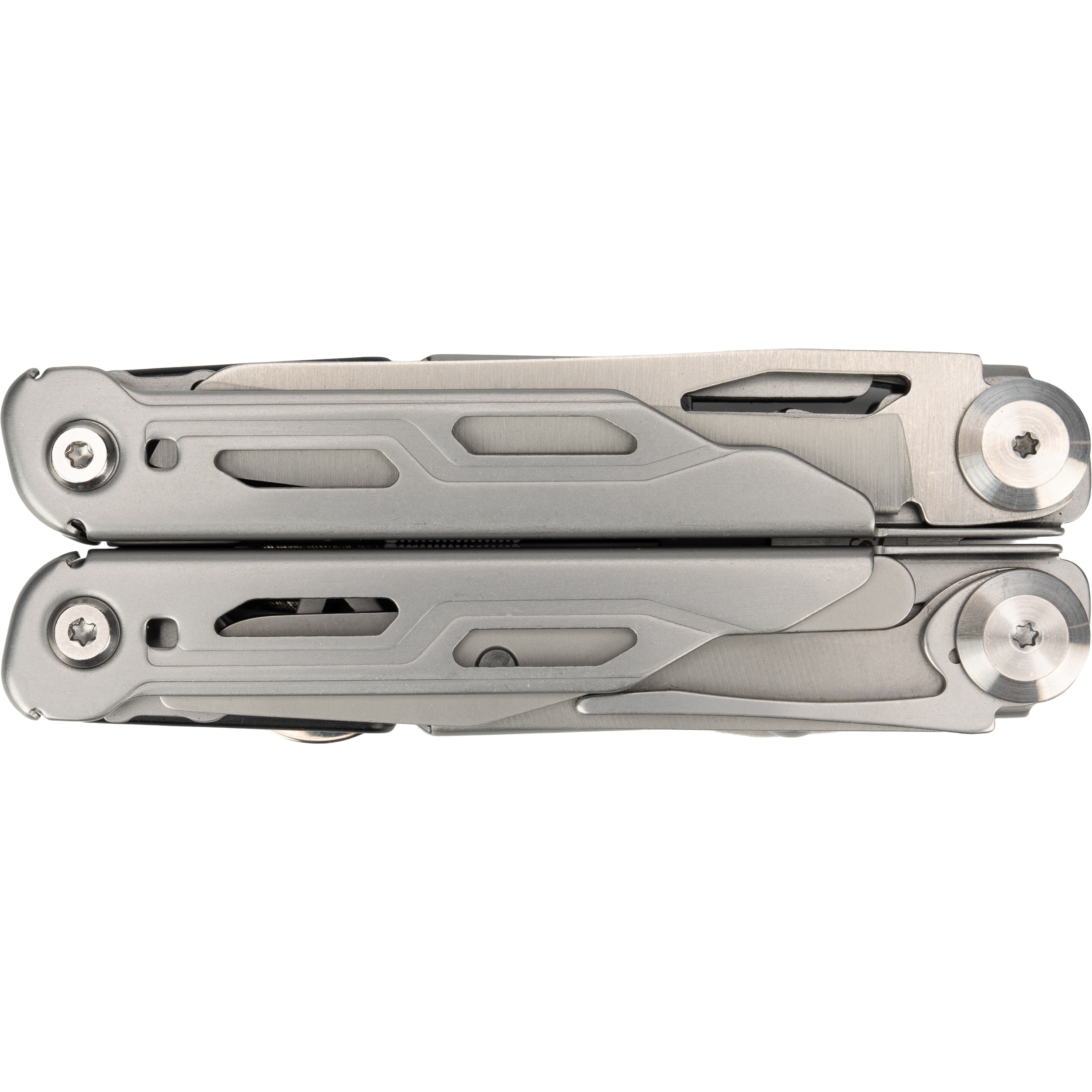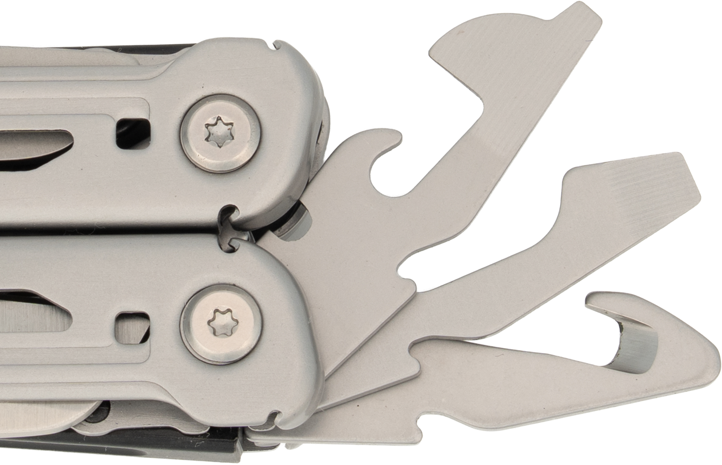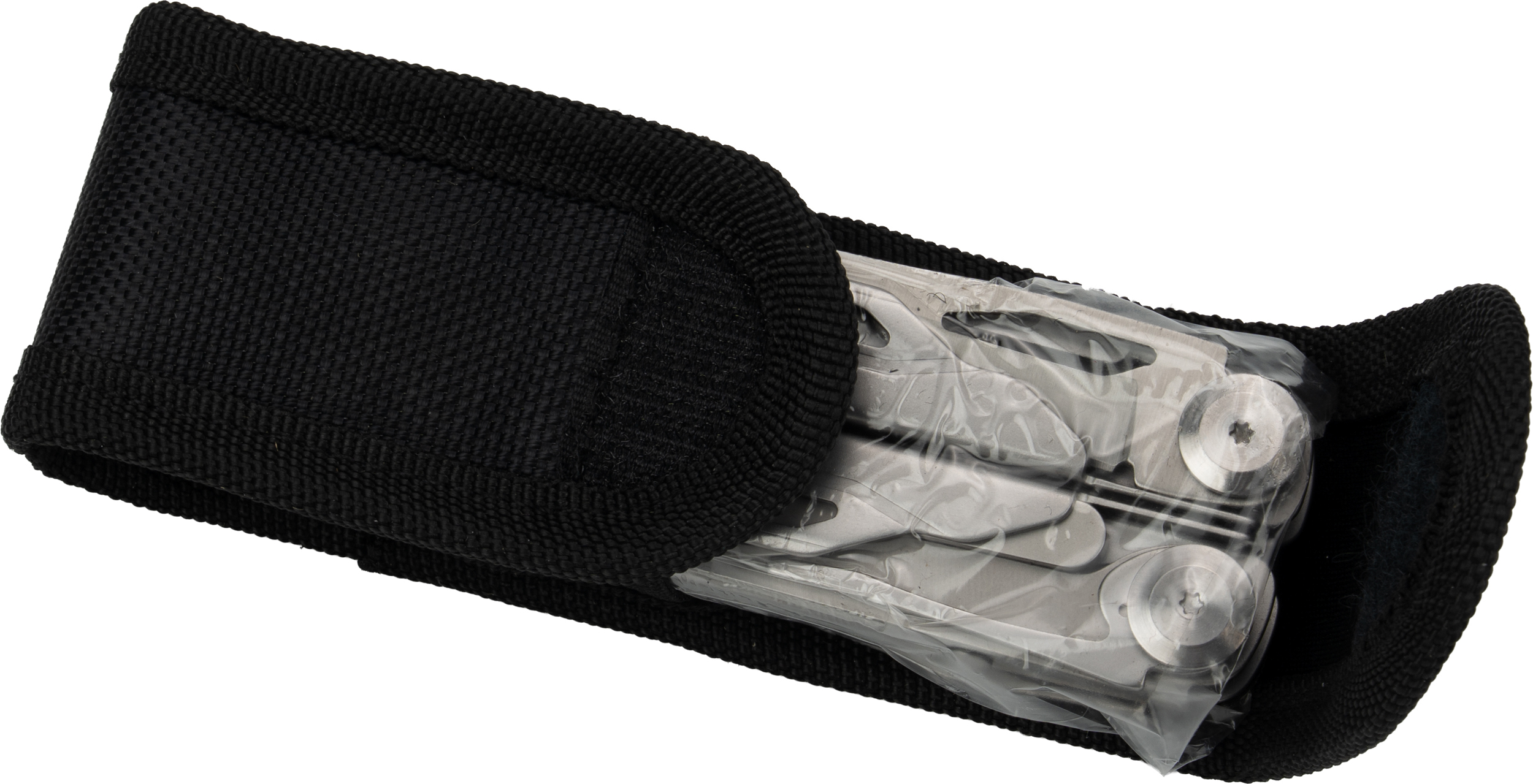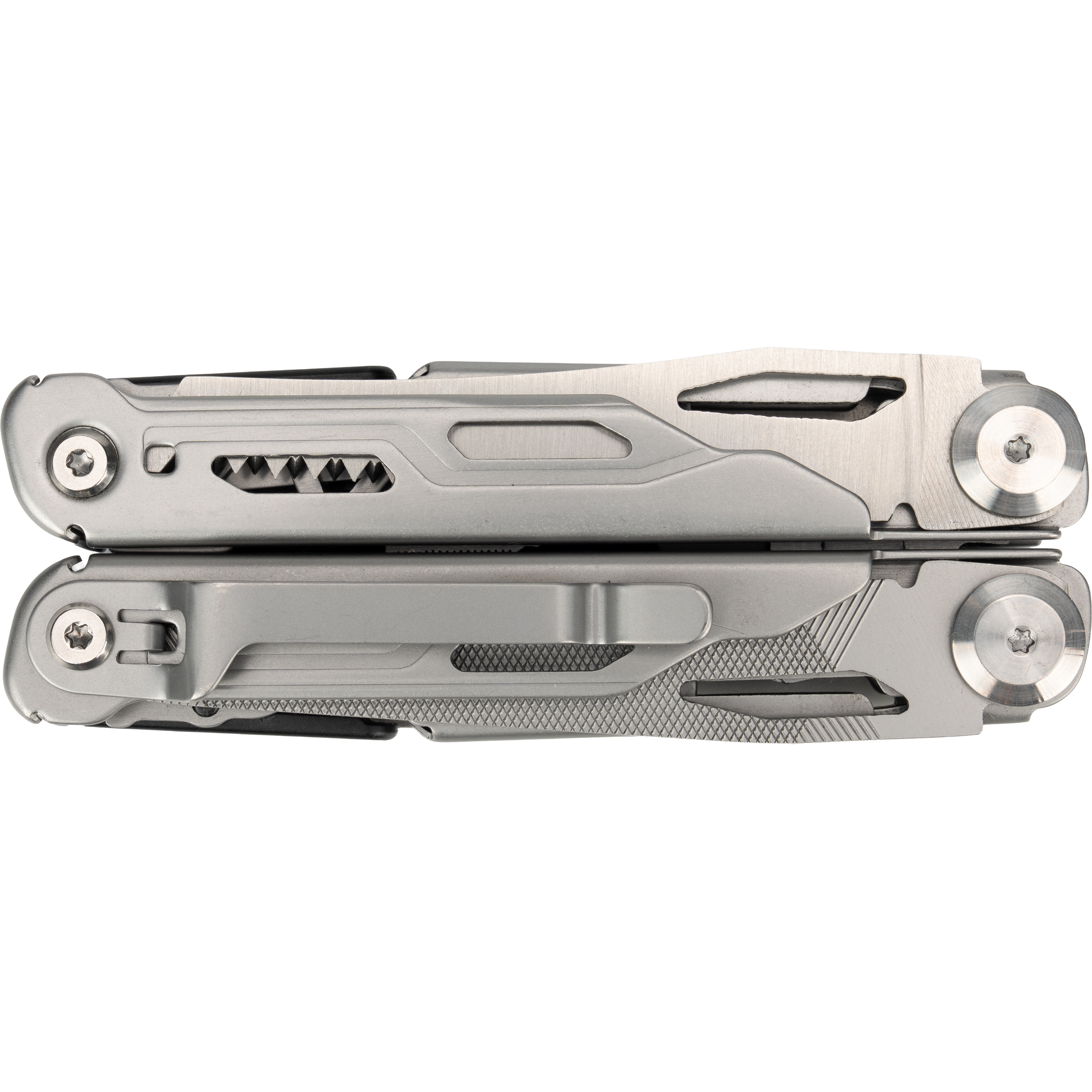 Multinarzędzie 17 w 1, ze stali nierdzewnej, wyposażone między innymi w: szczypce, nóż, piłke, nożyczki, śrubokręt itp. Posiada praktyczny klips, dzięki któremu można je przymocować do paska.